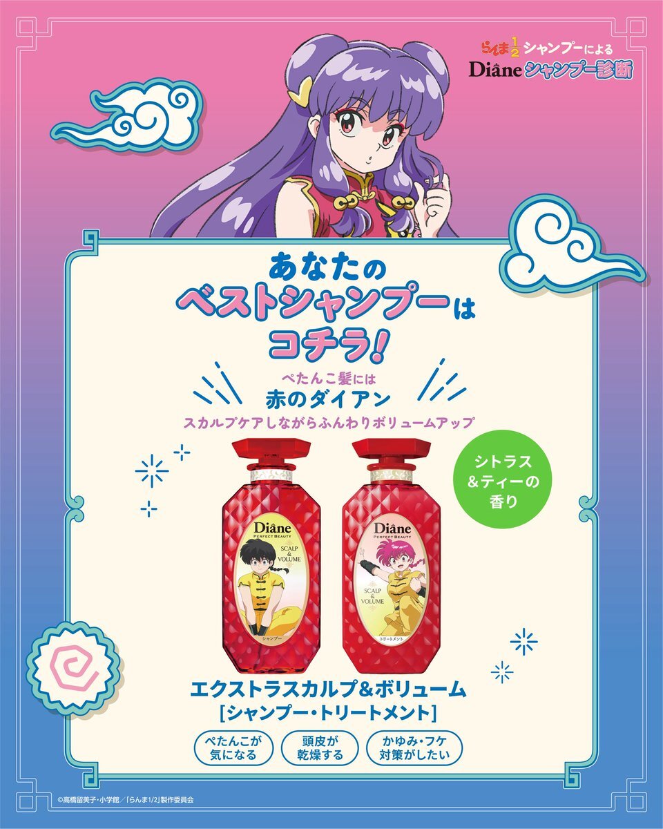 シャンプーのイラストが可愛いのと、口コミも良さそうなので買ってみました。 らんまは何度見ても面白いんだよなあ。大好きな漫画の一つです🥰 使うのが楽しみ! #Diane pic.x.com/mvtaVm2KJV