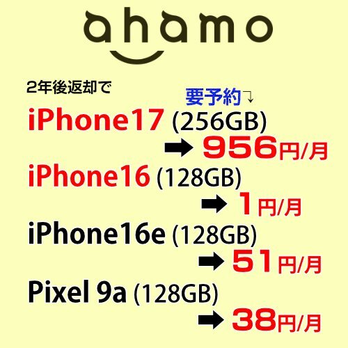 PR 6:28 ahamoへMNPで ♦️2年後返却 iPhone17 256GB👉956円/月 iPhone16 128GB👉1円/月 iPhone16e 128GB👉51円/月 ♦️一括 Galaxy A25 5G👉️9,900円 arrows We2👉️9,900円 ⚠️割引価格は最終画面で表示なので途中不安かもです #docomo #ahamo 👉️ tr.affiliate-sp.docomo.ne.jp/cl/d0000001629… ⤴️ pic.x.com/FRXK50yLAQ