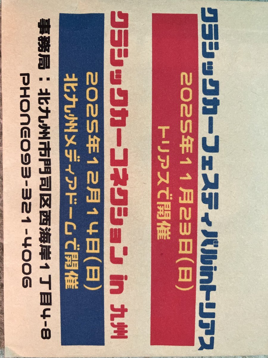 先日、家に届いたクルマのイベント開催案内 今回、新たなイベントが北九州メディアドームにて開催されるみたい… #クラシックカー #classic #car #コネクション #connection #九州 #メディア #media #ドーム #Dome pic.x.com/tLyMlqQA5r
