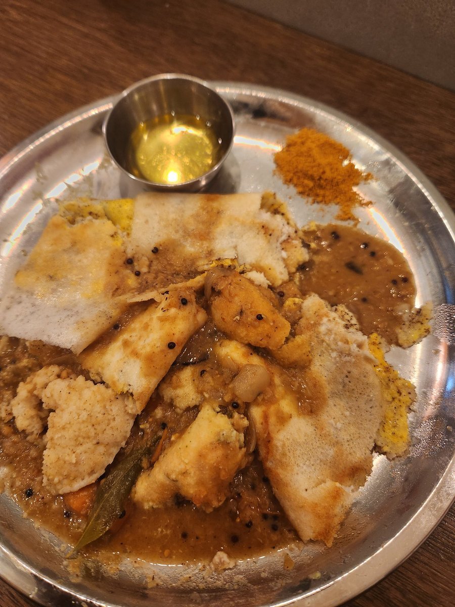 #dosa? テイファンセット スターターはオーソドックスに。 2周目はエッグドーサ、イドゥリ、ワダにサンバール、チヤトニーを直接かけてもらいグッチャグチャに混ぜて掻き込む。 お料理もサルビスのギュー、ポディにトマトベースのチヤトニーも全てが美味しかった。〆のキビ糖別添えのFT珈琲も良き👍 pic.x.com/zXxjgxRFn7