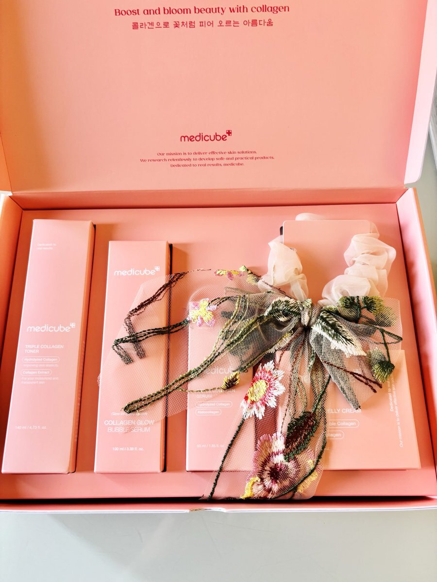 🧸𖤐⡱いただきました🧸𖤐⡱ #medicube @medicube_japan 様 ありがとうございます♡ 🌟#ピンクコラーゲンセット .·˖*✩⡱ 可愛いシュシュつきʚ♥ɞ ♥コラーゲントナー ♥コラーゲングローバブルセラム ♥トリプルコラーゲンセラム ♥コラーゲンジェルクリーム #double当選報告 pic.x.com/sKIw2WqE6P