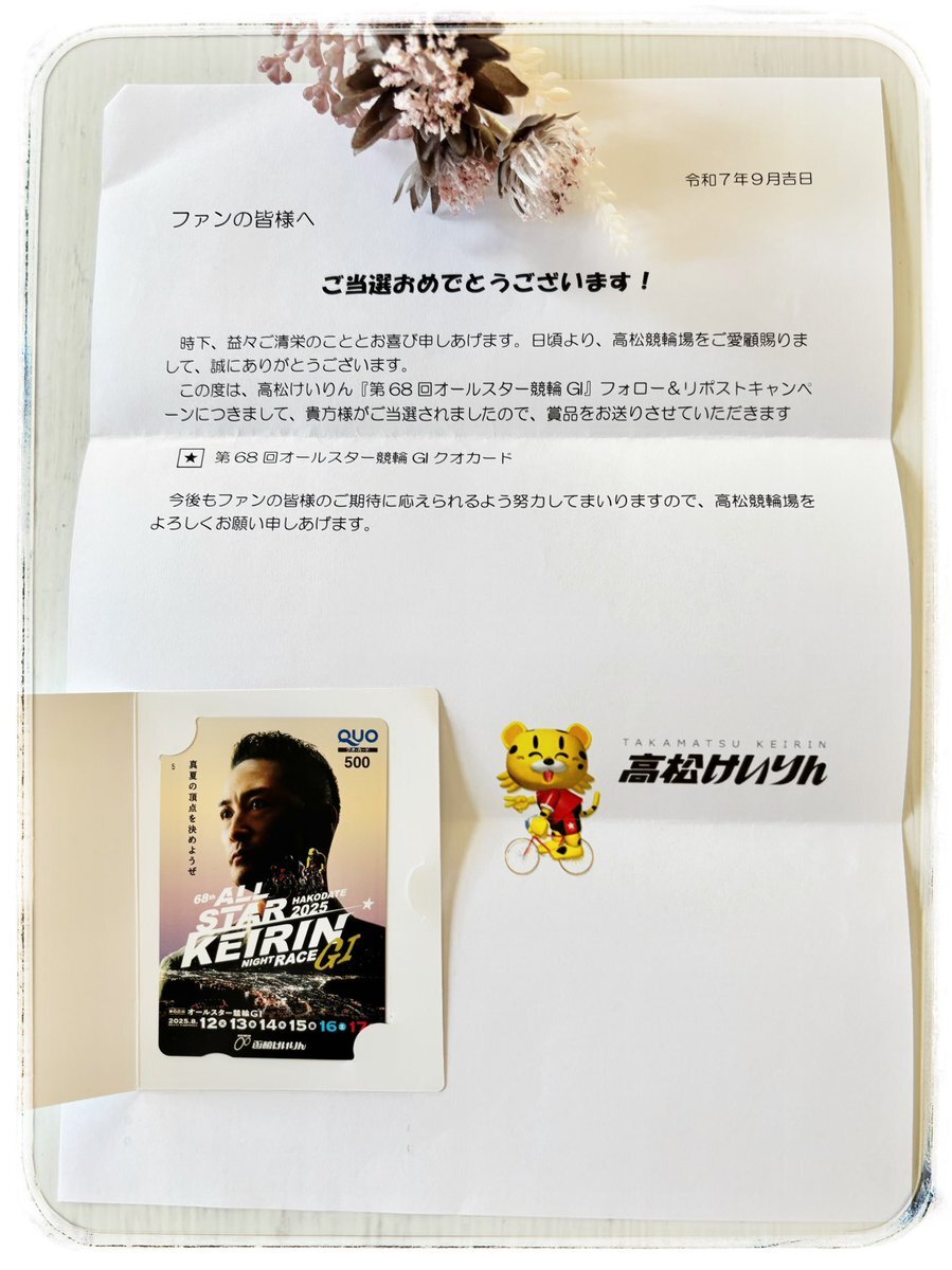 🧸𖤐⡱当選しました🧸𖤐⡱ #高松けいりん @tkmt_keirin 様 ありがとうございます♡ #松岡昌宏 さんがカッコいいです🐰。:ஐ..*✨☆ 書籍購入に使います·͜· ❤︎ とても嬉しいです°ʚ🎀ɞ°. この度は素敵な #ブレゼント ありがとうございました♪ #懸賞好きさんと繋がりたい #double当選報告 pic.x.com/sMe7ErPUtW