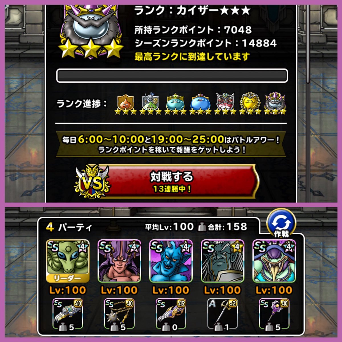 毎週カイザー3に上がってこのPTで上がりましたツイートするのが楽しみだったのよね😌 悪魔、ドラパ、自然、オムド… タクトも少しづつ強くなりますかね😁 ゆっくりと… #DQMSL #ドラクエタクト pic.x.com/M1kPnhuj7s
