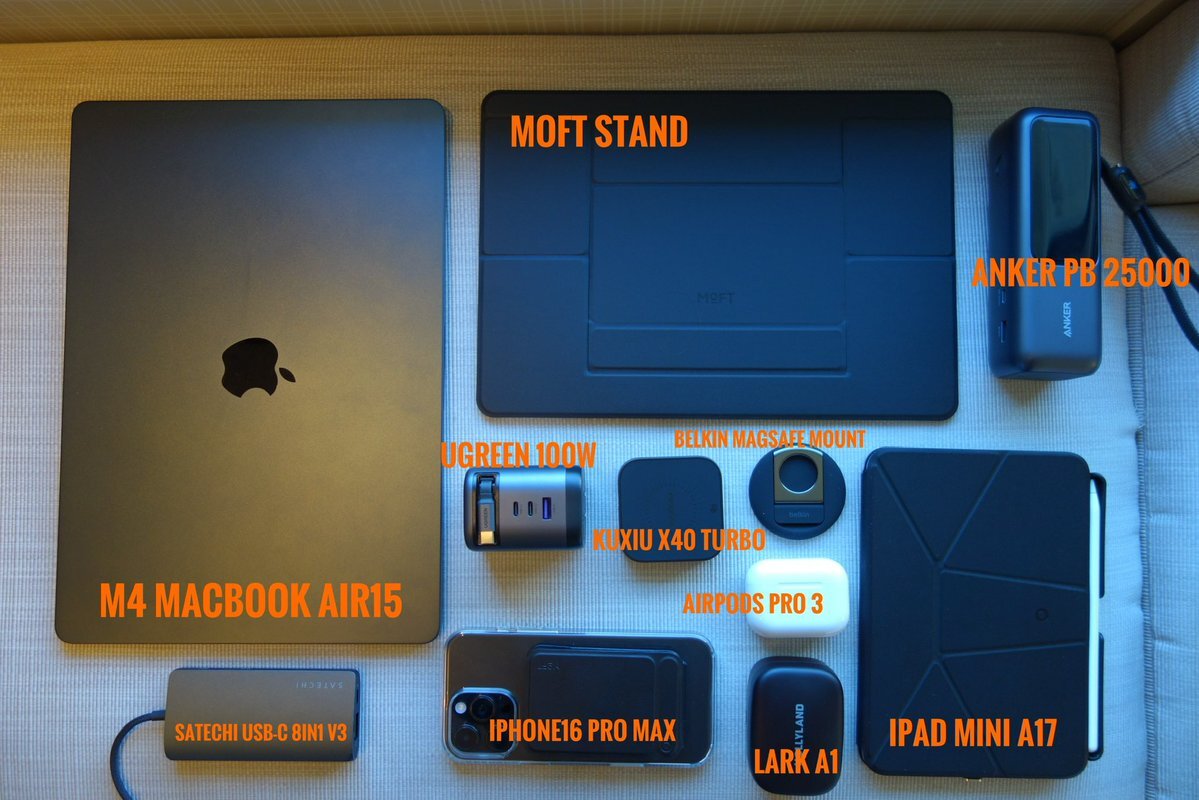 トラベルEDC①:ガジェット編 ポイントは、 ・内蔵ケーブルのみのケーブルレス ・MaxEDCを活かしたポーチレス ・165W25000mAh+100Wの最強電源 ・連携カメラとLARK A1で高品質ビデオ会議 あと15インチって本気で作業するにはちょうどいいサイズ✨ #EDC #TravelEDC #レシピ #EDCレシピ pic.x.com/LhupwRFq2G