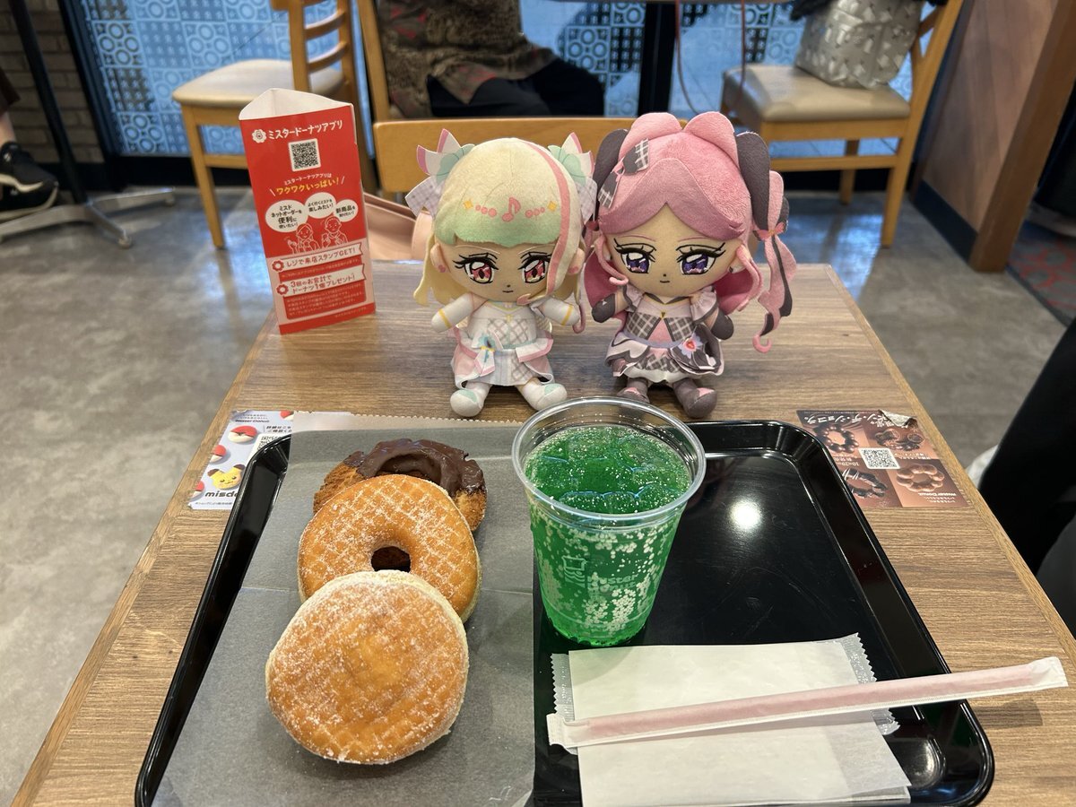 いろいろ歩き回って(入場券で改札通って)駅内のミスドなう🍩🍹 #広島駅 #ekie #minamoa #ミスド #キミプリ #precure #ぬい撮り #ぬい活 #ぬいぐるみの時間 pic.x.com/aGegJIZsJI