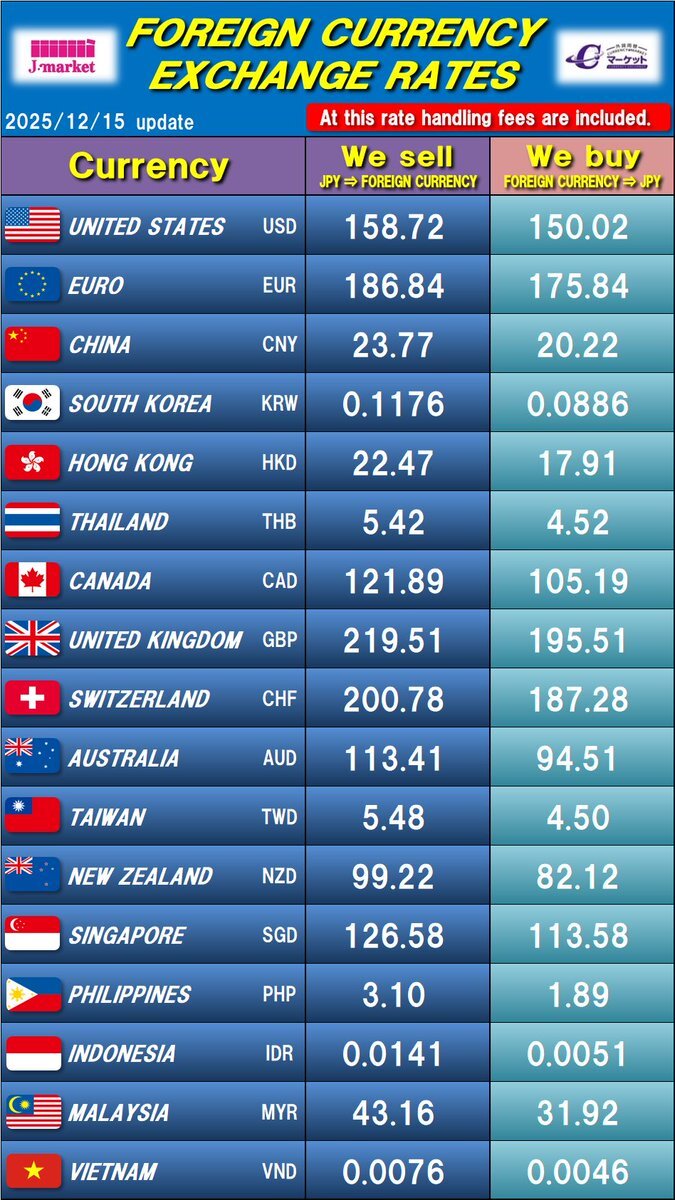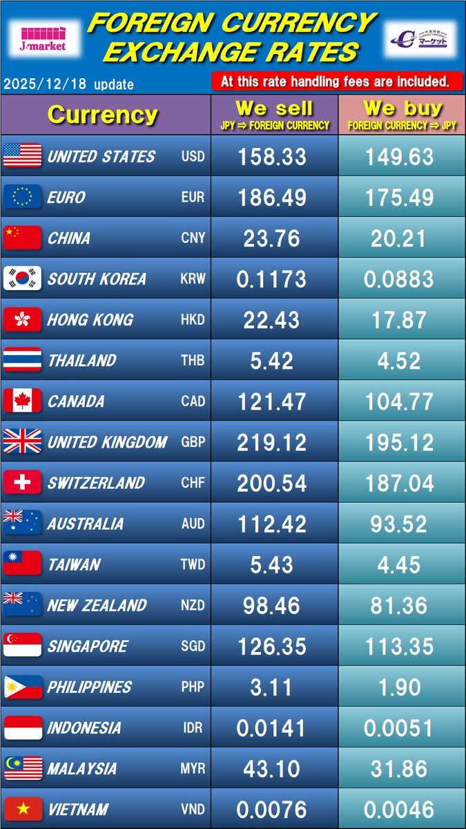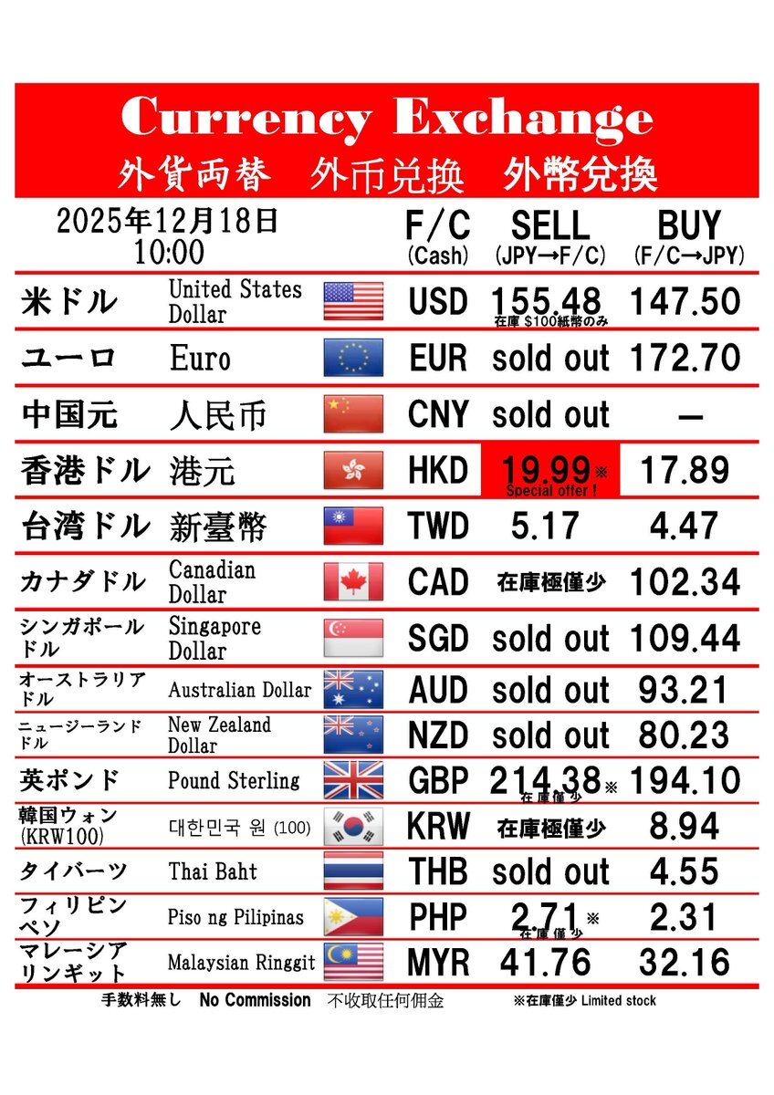 おはようございます #外貨両替フラッグスタッフ です 2025年12月19日(金)の両替レートです Skypeサービス終了に伴い「050-5539-9999」の提供が終了しました 今後は eメール info@flagstaff.co.jpにてお問い合わせ願います 宜しくお願い致します #横浜 #中華街 #海外旅行 #外貨両替 #exchange #yokohama pic.x.com/McEj4GcwUW