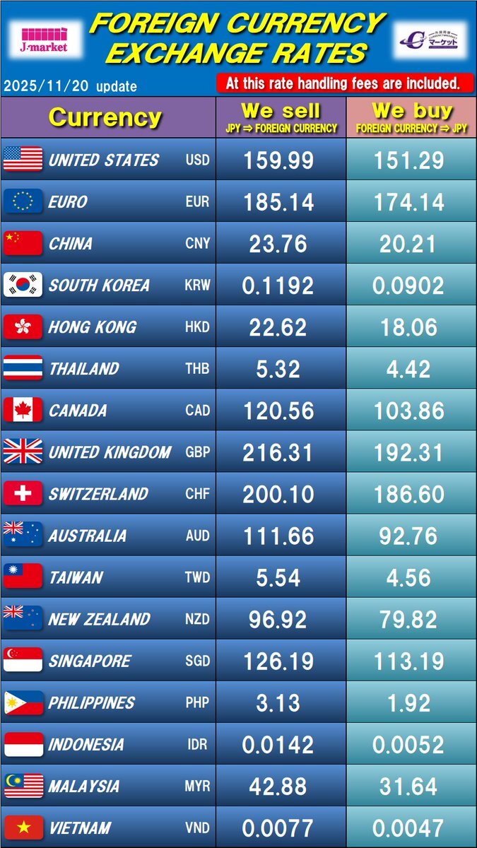 おはようございます #外貨両替フラッグスタッフ です 2025年11月20日(木)の両替レートです Skypeサービス終了に伴い「050-5539-9999」の提供が終了しました 今後は eメール info@flagstaff.co.jpにてお問い合わせ願います 宜しくお願い致します #横浜 #中華街 #海外旅行 #外貨両替 #exchange #yokohama pic.x.com/CPaSVeNpl4