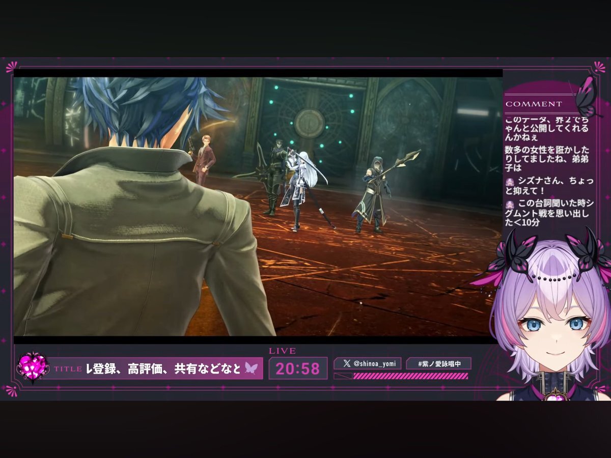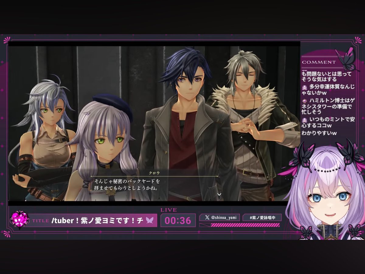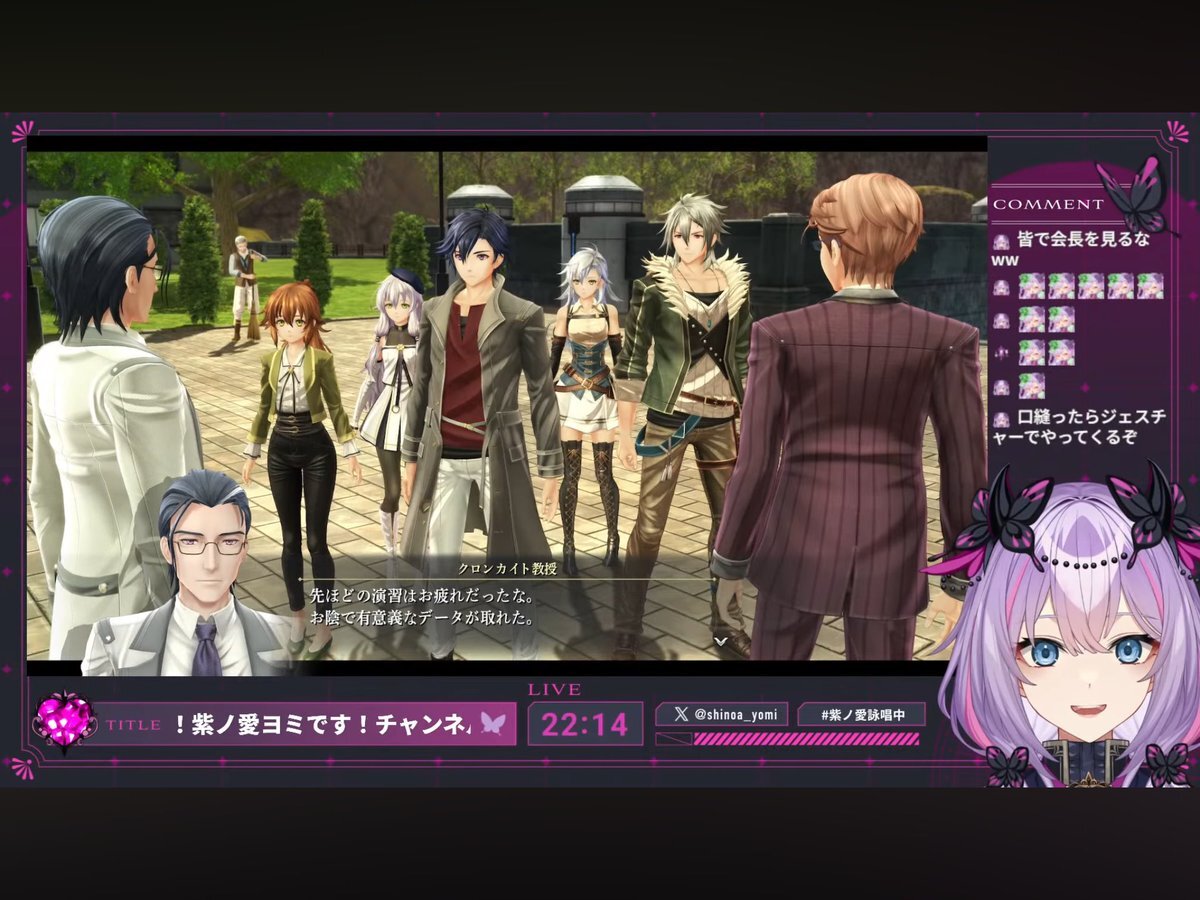 初めましてもいる 仮想空間で顔合わせをする主人公ズ。挨拶もそこそこの彼らがやることはゲーム攻略。怪しい敵幹部が登場し彼らのチームワークが試される--!! #紫ノ愛ヨミ #しのあ詠唱中 #新人Vtuber #ゲーム実況 #ゲーム配信 #界の軌跡 #軌跡シリーズ #日本ファルコム #Falcom #ファルコム女子 pic.x.com/DWA4xXqO5s x.com/shinoa_yomi/st…