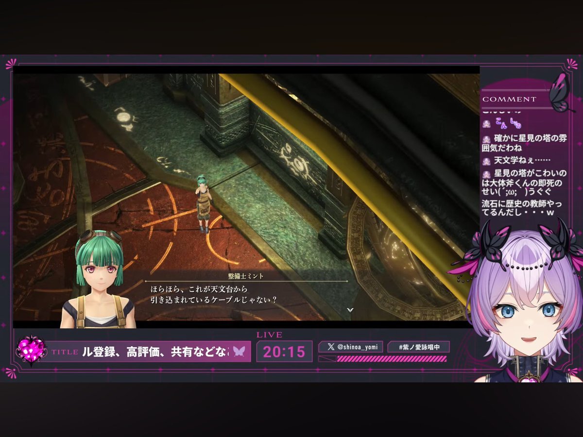 💜本 日 の 配 信💜 【界の軌跡/#14-第Ⅱ部-リィン③】天文台に地下!?怪しい!※シリーズネタバレ有【紫ノ愛ヨミ/Vtuber】 START▶11/18 20:00 さ〜て世界の真実も知っちゃったし、追加で情報得に行きますか〜🙄 youtube.com/live/Aj7nRVSnf… #しのあ詠唱中