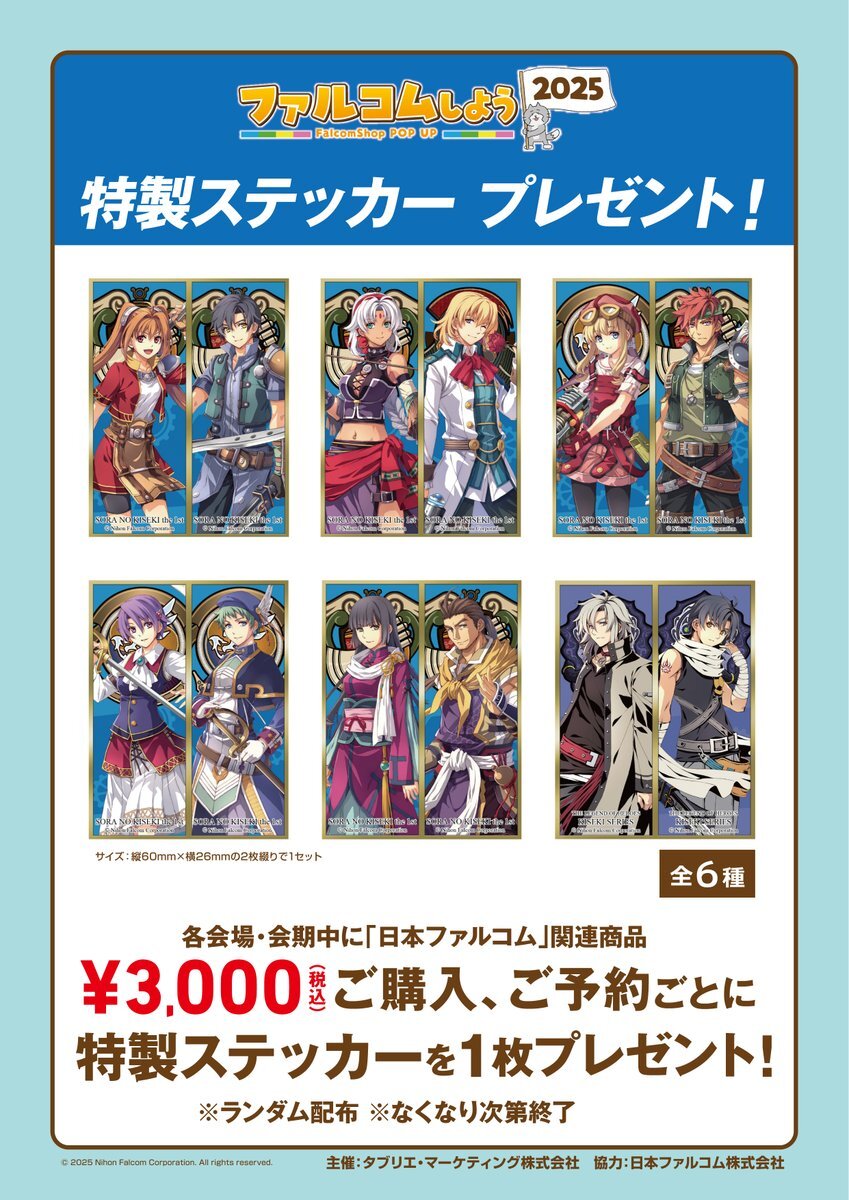 / 📢3️⃣Fにて開催中📢 「ファルコムしよう2025~FalcomShop POP UP~」 \ 🎊[ファルコムショップ]の巡回が開催🎊 🔹試遊台🎮やTGS2025のものなどなど展示が目白押し👀 🔹関連商品ご購入🛍️で特製ステッカープレゼント🎁 🔽詳しくはこちら🔽 geestore.com/event/gallery/… #falcom #ファルコム pic.x.com/8dT7qsUOGR