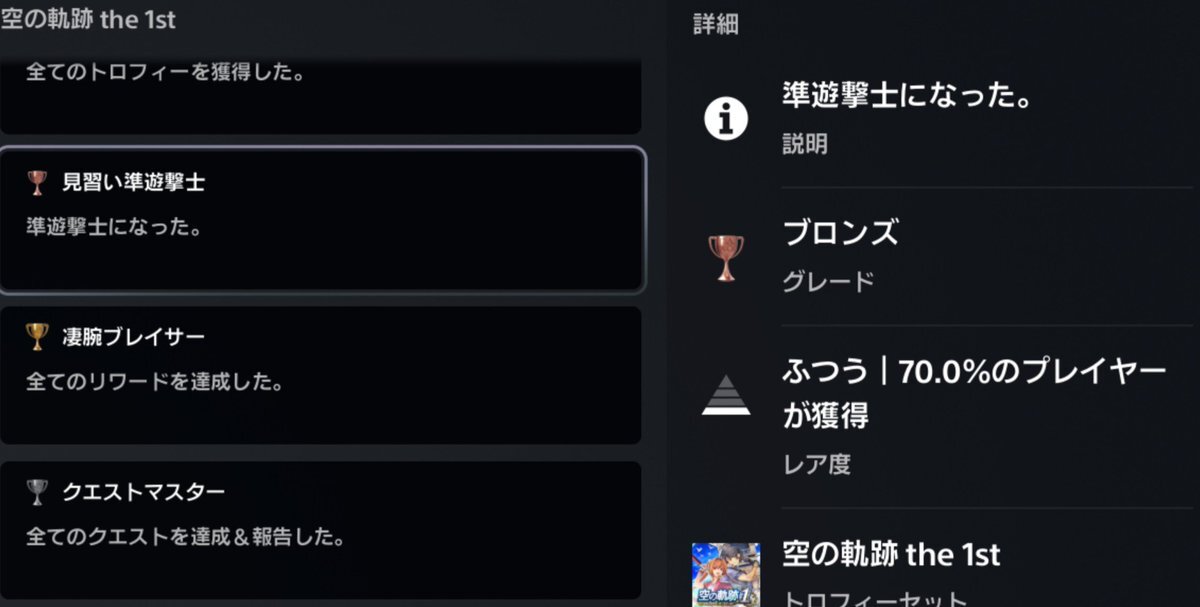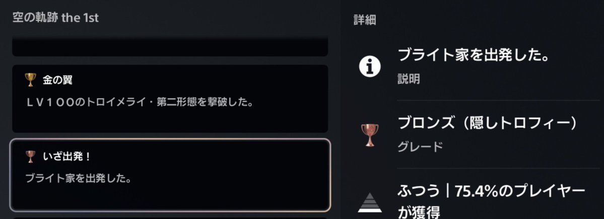 FF16の時にも同じこと言ってるけどさ、とりあえず体験版からセーブデータ引き継げる系のトロフィー反映されないバグは早くなんとかしようぜ、どのメーカーも。 #falcom #空の軌跡the1st #trophy#ps5 pic.x.com/zGMTqyKjQ6