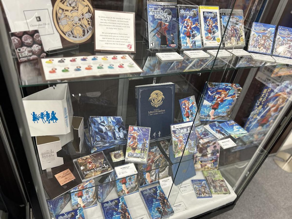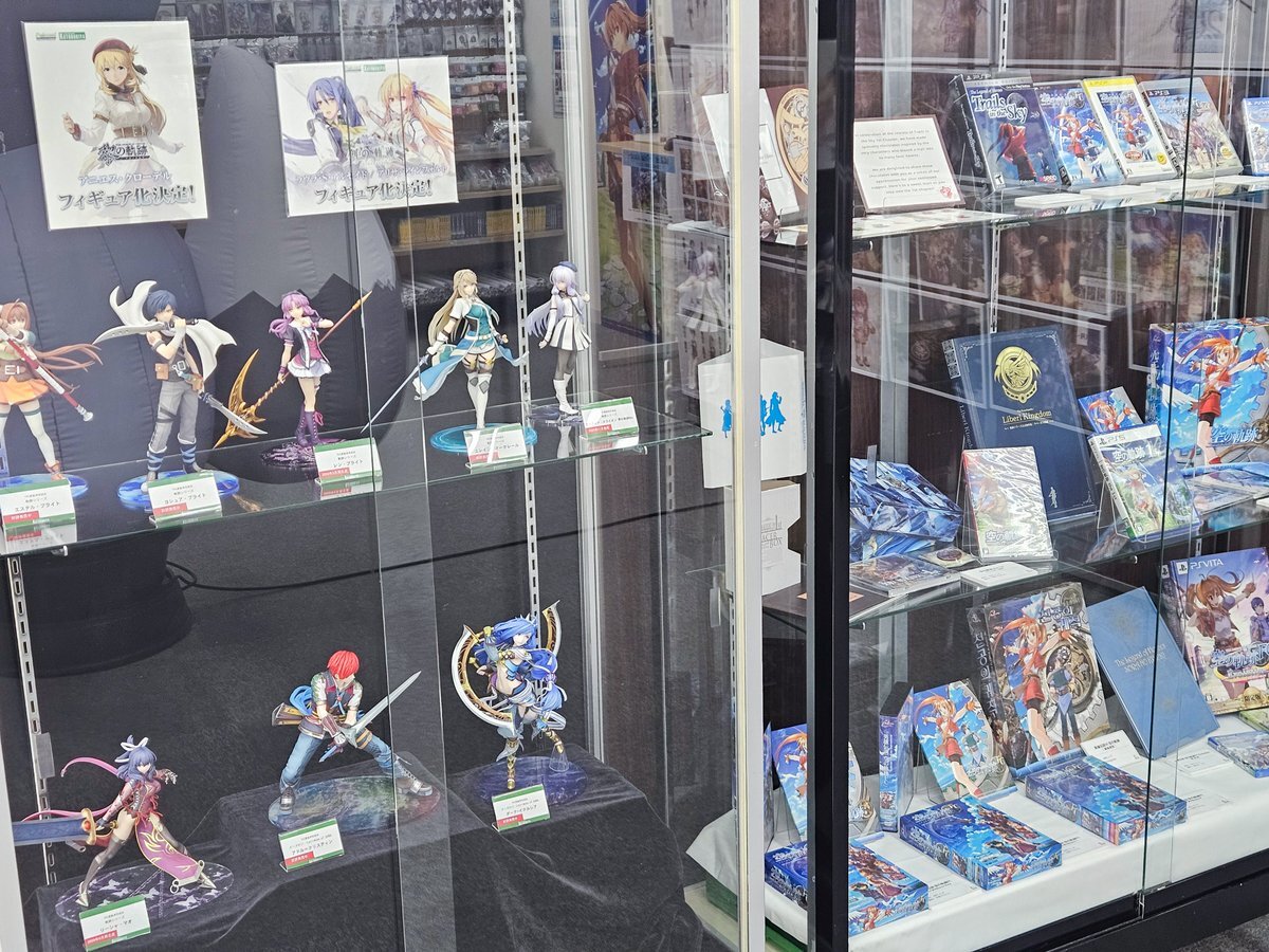 TGSの展示物もあるらしいので、ジーストア名古屋に行ってみた。 例の身長差イラストを期待していたんだけど、それは無かったので残念。 あのイラスト、画像とかで公開してくれないかなぁ。 日本ファルコムのグッズサイト「ファルコムショップ」が各会場を巡回! geestore.com/event/gallery/… #falcom
