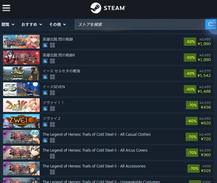 DLCもセール中! 《Steamパブリッシャーセール》 11月28日(土)1:00am ※日本時間まで! 日本語対応タイトル ▼XSEED Games, Marvelous USA, Inc. イース セルセタの樹海 イ-スSEVEN 英雄伝説 閃の軌跡Ⅱ 英雄伝説 閃の軌跡 ツヴァイ2 ツヴァイ!! store.steampowered.com/search/?term=N… #setam #falcom pic.x.com/4bCypsY0QC