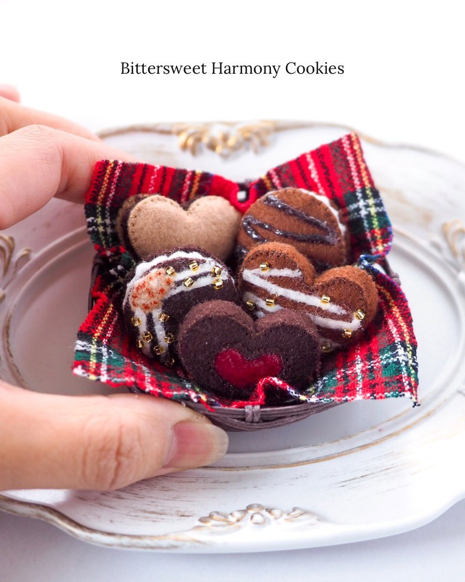 -- Bittersweet Harmony Cookies -- ほろ苦いチョコとやさしい甘さをイメージした フェルトのクッキーセット🍪 赤いチェックのクロスとブラウンのかごで、 冬のティータイムをぎゅっと詰め込みました☕️ #フェルト #felt #フェイクスイーツ pic.x.com/yrPhzkqo5o