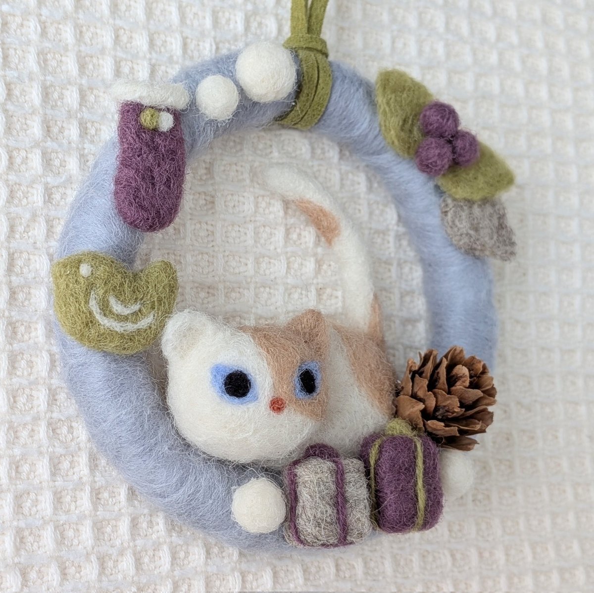 三軒茶屋のLUPOPOカフェ(@Lupopo_cafe )さまに並べている猫のリース🐱🎄 淡い優しい色合いに仕上げました☺️ #羊毛フェルト #felt #ハンドメイド #猫 #クリスマスリース #LUPOPO作家 pic.x.com/8DEmYRoJa6