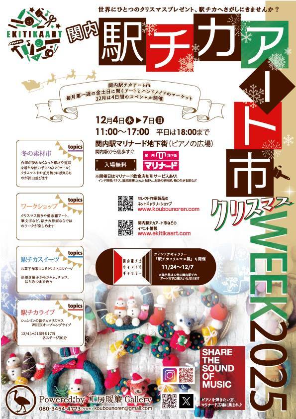 2025最後の駅チカ! 関内駅チカアート市クリスマスWEEK2025 12月は木曜から4日間開催!冬の素材市!シュンミンによるオープニングライブも! ekitikaart.com/?p=22768 #関内駅チカアート市