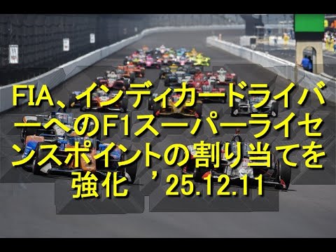 FIA、インディカードライバーへのF1スーパーライセンスポイントの割り当てを強化 ’25 12 11 youtu.be/C-5x-XBXKQA #F1 #2025年 #インディカー #ポイント割り当て強化 #FIA
