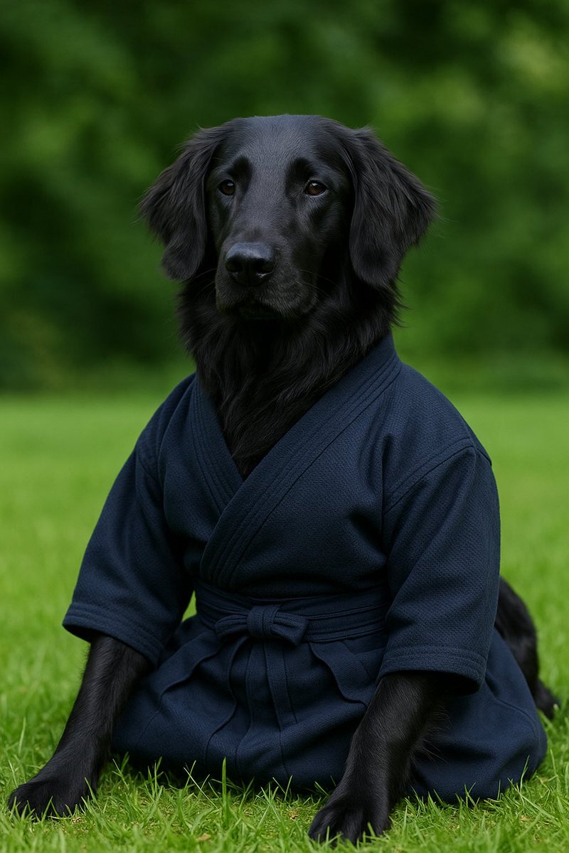 フラットコーテッドレトリーバー と剣道。 うーん、かわいいしかっこいいけど、なんか違和感。AIは簡単だけど難しい(矛盾)🤨 #Kendo #Dog #FlatcoatedRetriever #AIgeneratedimages #飼ってみたい pic.x.com/n0bYvAwP4N