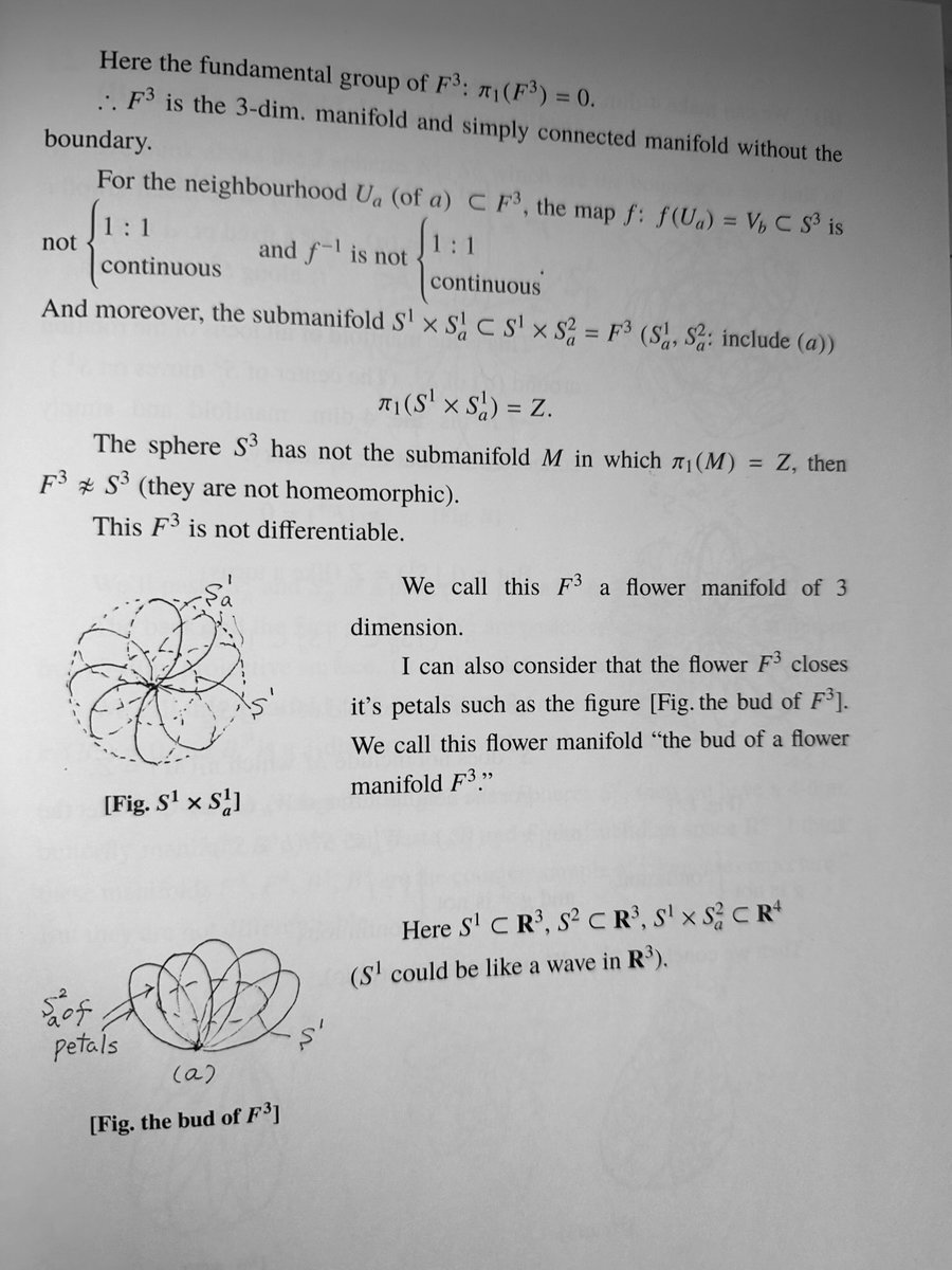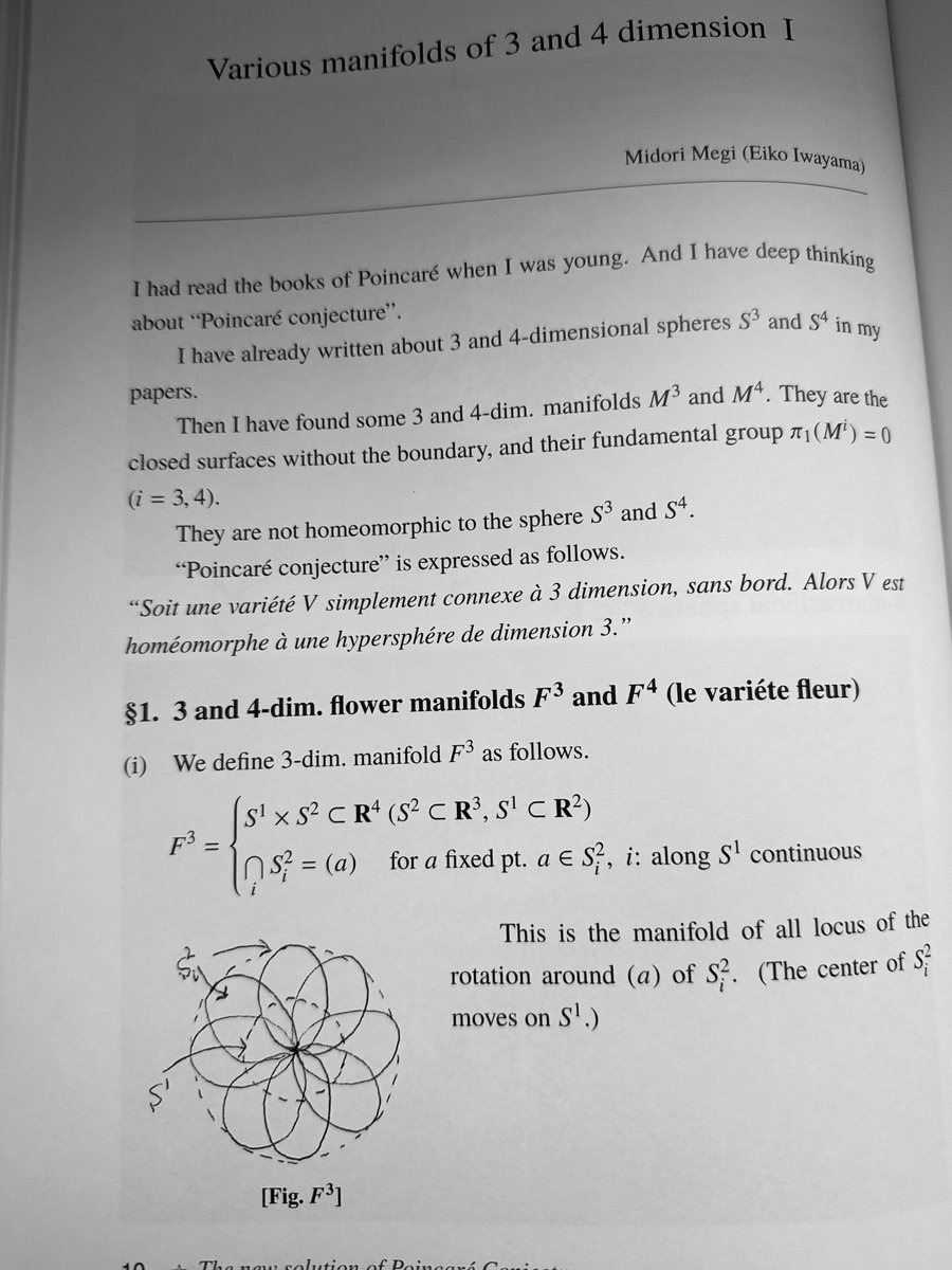 先日一部の方に配ったアブストラクトの中で、コピーを割愛した、ポアンカレ予想の反例で、最も基本的な花多様体、蝶多様体の部分を載せます。基本的には、不許複製ですが、仲間で研究する為に限り、コピー可とします。😊✍️📚 #日本数学会 #MartinBridsonFRS #CédricVillani #LMS,#AMS,#FMS pic.x.com/0XTVIkh36C