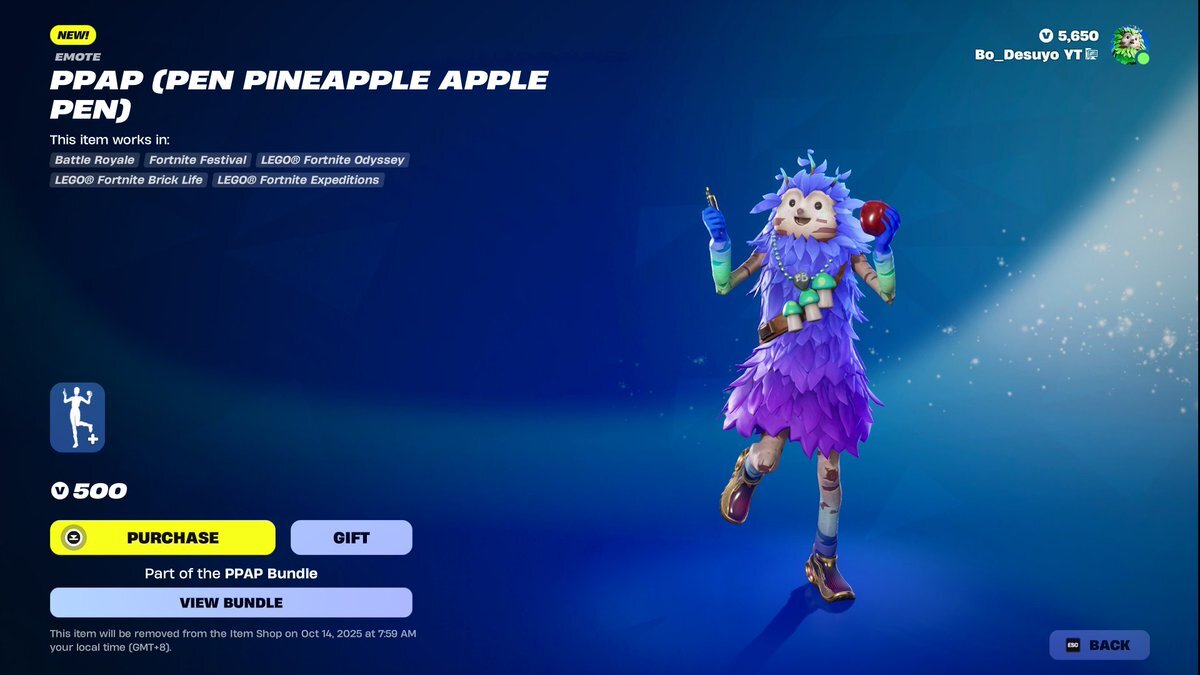 💝PPAP! Get it here! fortnite.com/item-shop/emot…💝 ❤️Use Code/クリサポ 🌿BO_DESUYO🌿 #Fortnite Item Shop ^^💝Epic Partner #EpicPartner #フォートナイト #FortniteChapter6 #FortniteShockNAwesome #FortniteOG #LEGOFortnite #FortniteFestival #アイテムショップ #youtubegaming #FortniteNews pic.x.com/VdzC1GX2c6