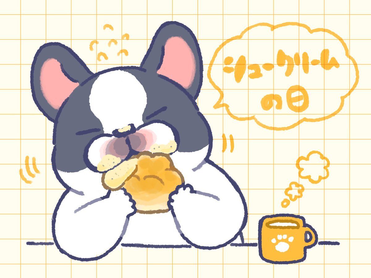毎月19日はシュークリームの日💛わ、クリームこぼれちゃう‼️ #illustration #イラスト #フレンチブルドッグ #フレブル #frenchbulldog #ゆるい絵 #ゆるいイラスト #絵柄が好みって人にフォローされたい #シュークリームの日 #今日は何の日 pic.x.com/jO5l6AM9Gp