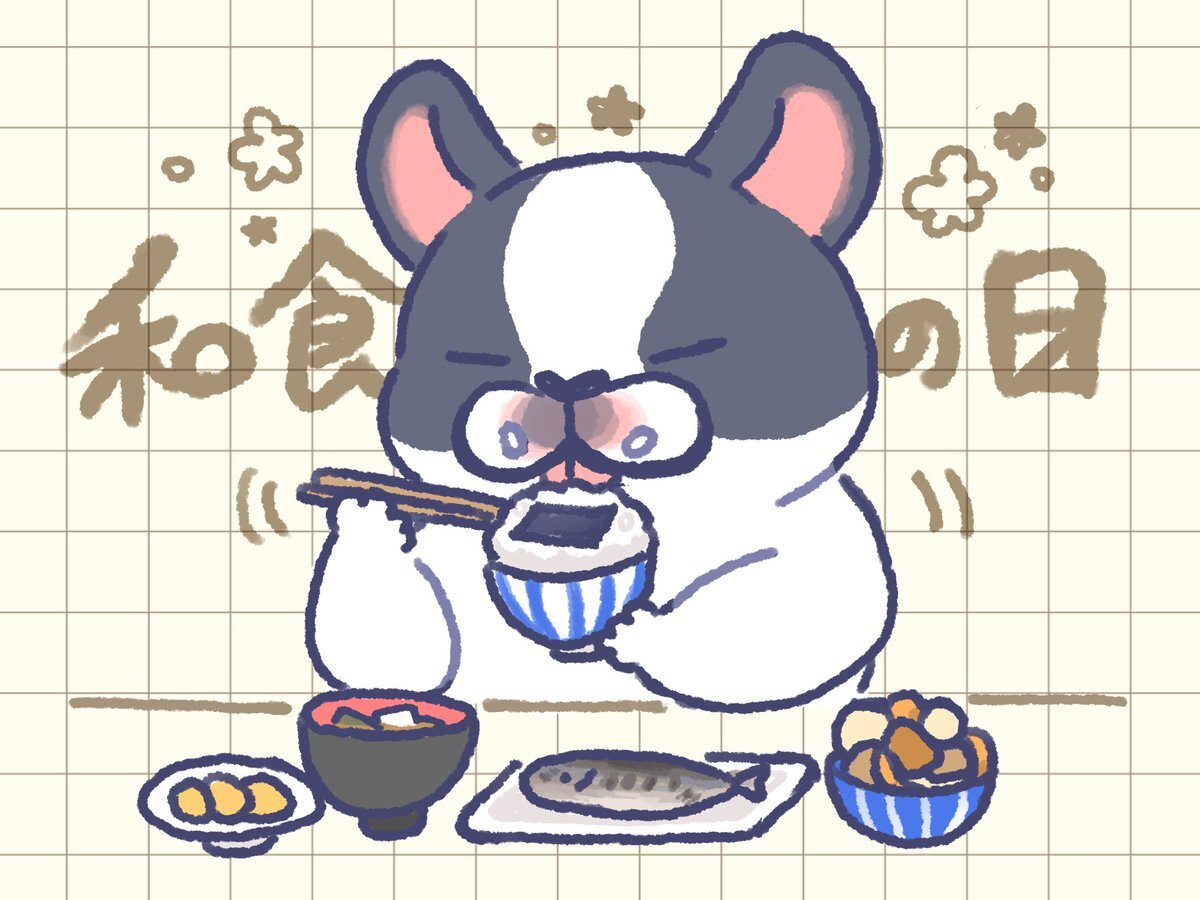 今日は和食の日🍚バランスよくいただきま〜す🥢 #illustration #イラスト #フレンチブルドッグ #フレブル #frenchbulldog #ゆるい絵 #ゆるいイラスト #絵柄が好みって人にフォローされたい #和食の日 #今日は何の日 pic.x.com/IiKkYRhruP