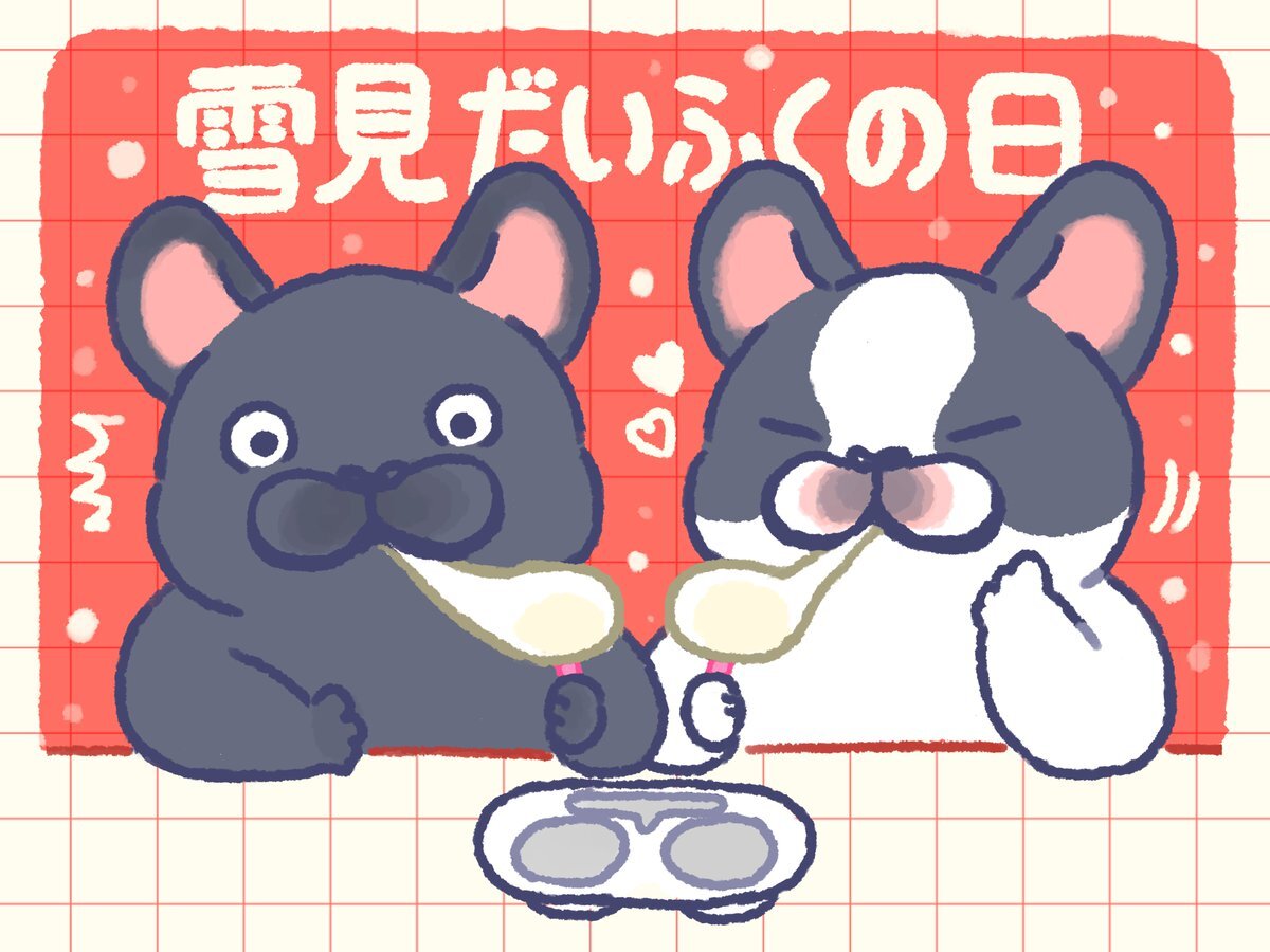 今日は雪見だいふくの日⛄️❤️このモチモチ感がたまらないね〜🐶🐶 #illustration #イラスト #フレンチブルドッグ #フレブル #frenchbulldog #ゆるい絵 #ゆるいイラスト #絵柄が好みって人にフォローされたい #雪見だいふくの日 #今日は何の日 pic.x.com/KslCPAnY1k