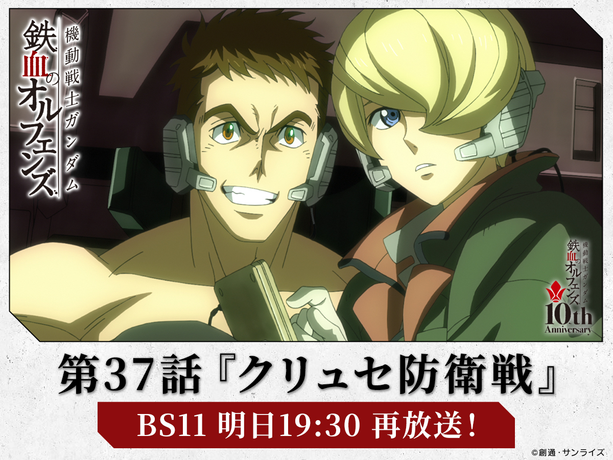 ━━━━\明日19:30~ 再放送!!/━━━━ 『機動戦士ガンダム #鉄血のオルフェンズ』 ━━━━━━━━━━━━━━━━━━━ 第37話「クリュセ防衛戦」 明日12/20(土)19:30~ BS11にて放送予定。 是非ご覧ください! bs11.jp/anime/gundam-t… #g_tekketsu #鉄血10周年 pic.x.com/I2105QWMFw