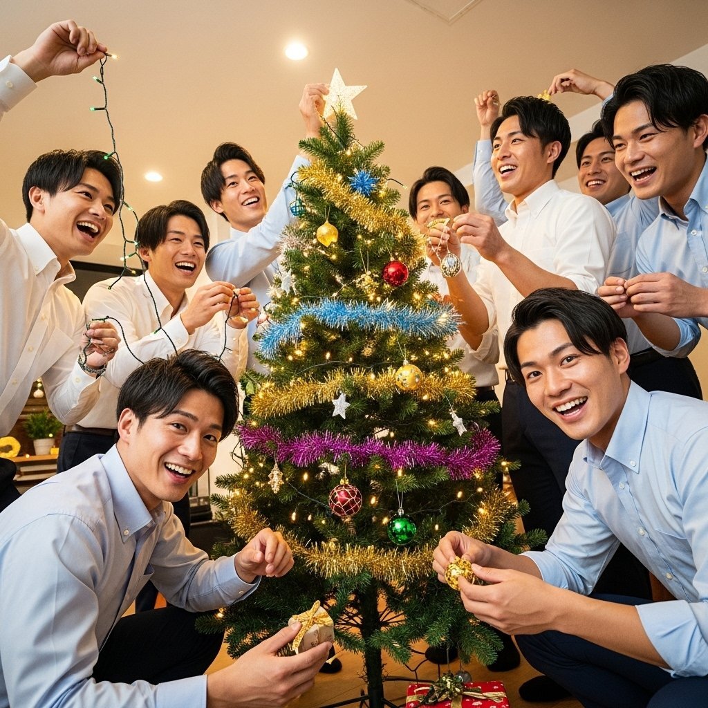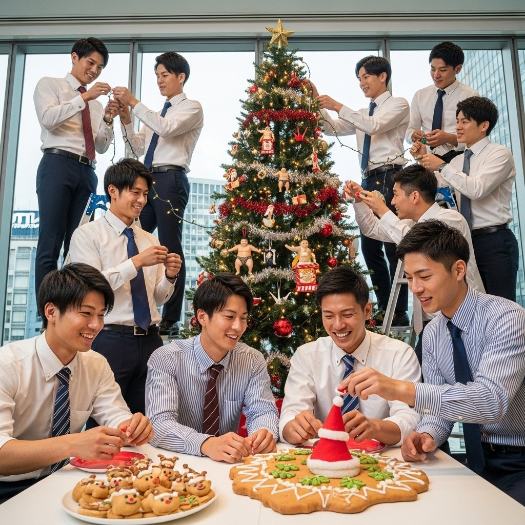 ショッピングモール内は既にクリスマスのBGM🎁爽やかリーマン達も、せっせとクリスマスの飾り付け😃✨ (妄想AIノンケリーマン物語) #ノンケ #ゲイ #ノンケ若リーマンは至宝 #gay pic.x.com/TTKjvxAoZM