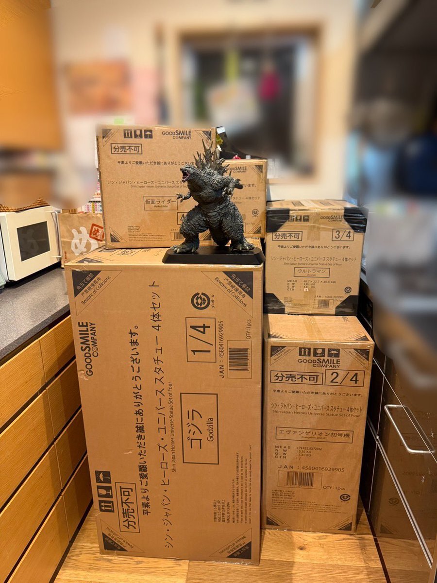 原型を担当させていただいた、 シン・ジャパン・ヒーローズ・ユニバース 『ゴジラ』のサンプルが 前触れもなく届いたんですが… さすが、ゴジラ! 箱がデ、デカすぎる… ありがとうございます!! #sjhu #sjhaw #シン・ゴジラ #シンゴジラ #goodsmile #グッスマ pic.x.com/2upyv8QYeQ x.com/genzo_ihara/st…