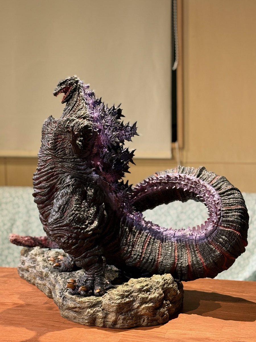 ぼちぼち開封しましたー!まずは #シン・ゴジラ 全長約56cmの大迫力に圧倒されつつ尻尾のにゅるん感が可愛い👍皮膚の下の赤や紫が自発光してるような色彩と爪や牙のリアルさも素晴らしいです。 開封ショート動画はリプ欄にて🎥 #sjhu #シンゴジラ #goodsmile #グッスマ pic.x.com/ELgFBJbe92 x.com/13thbase/statu…