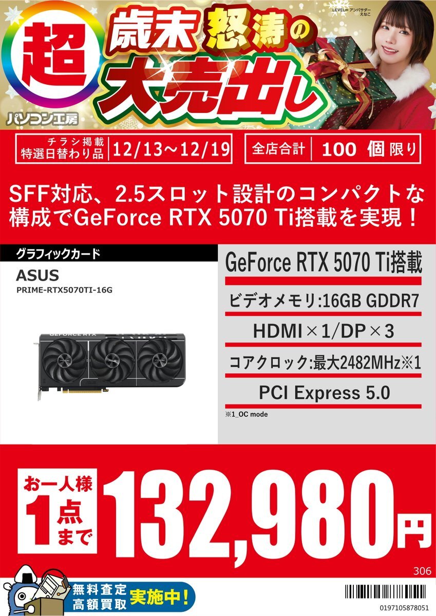 ⭐️お得なお知らせ⭐️ 超歳末怒涛の大売り出し開催中! 今週のセール商品はこちら! ご来店お待ちしております♪ #岡山 #パソコン工房 #5070ti #GPU pic.x.com/KwklkG3sLM
