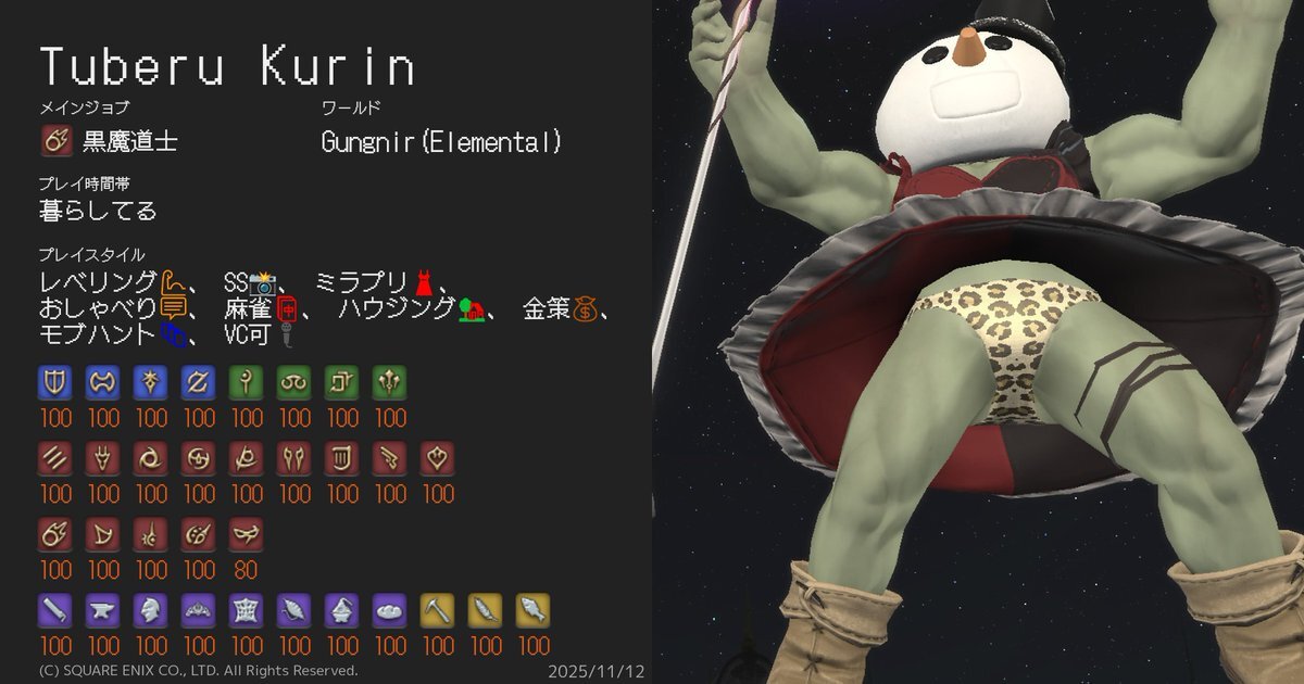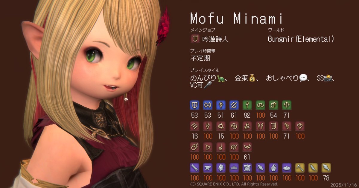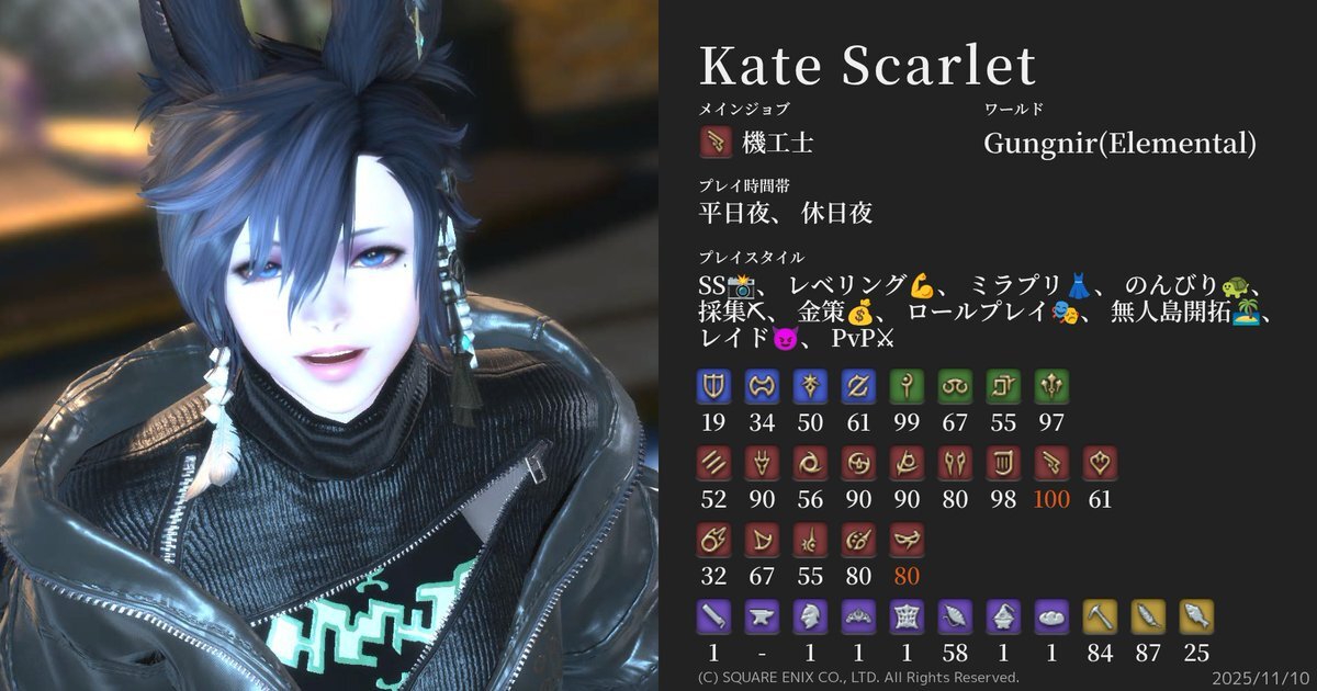 ギャザクラカンストしたのでキャラカ更新です。 ハウスと装備更新でお金無くなりました(´;ω;`) characa.kkimu.dev #キャラカ #FF14 #FF14キャラクターカード #ElementalDC #Gungnir pic.x.com/3Y3RaADqi1