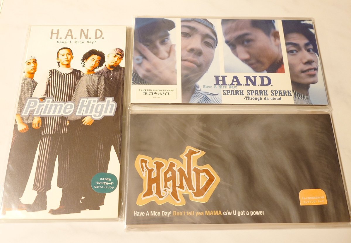 最近買った8cm CD💿️ H.A.N.D. Prime High SPARK SPARK SPARK -Through da cloud- Don't tell yea MAMA 小室哲哉プロデュースH.A.N.D.の8cm CD3枚がやっと見つかった! 当時の外袋付き😀 #8cmCD #HAND #小室哲哉 pic.x.com/ZcrmH2esUD