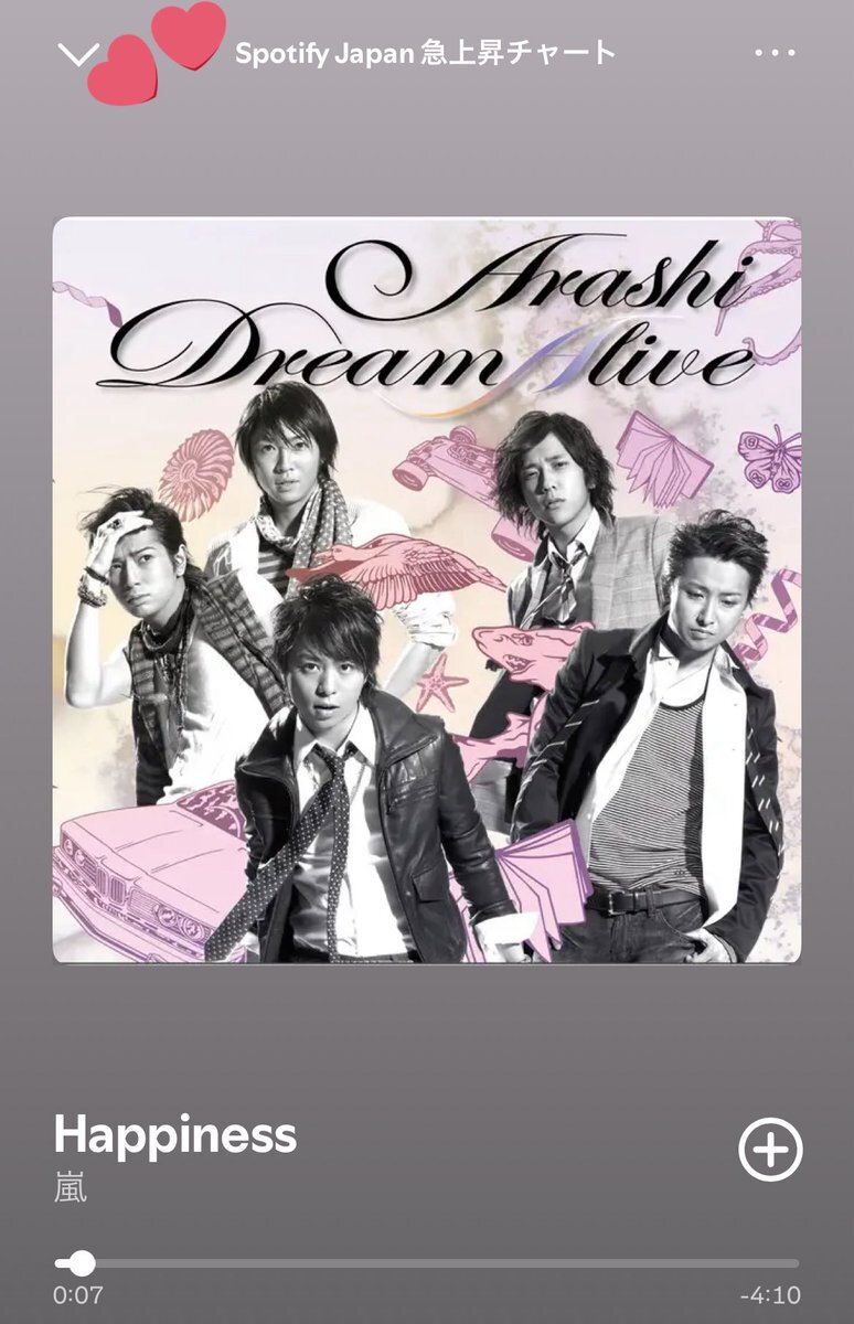 Spotify Japan 急上昇チャートにHappinessが入ってた💙❤️💚💛💜🤟 嵐ソングがJAPAN Top50にチャートインしてくるといいね🎵 今夜はニノさんだ〜💛 #嵐 #ARASHI #Happiness 🎵open.spotify.com/track/5p2NSsBi… pic.x.com/HxL3fMhwtH