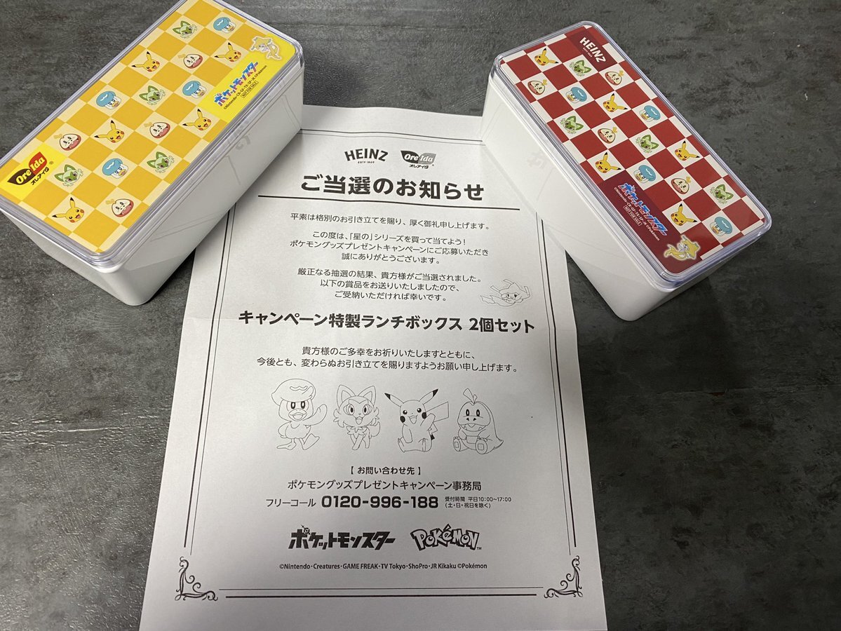 月曜の朝から宅急便🐈⬛ピンポーン 夏頃に応募したまま忘れてた冷凍食品の「星のポテト屋さん」とポケモンのコラボキャンペーンのお弁当箱が当選した😆💕💕💕 子供たち大喜び💕 応募したことも忘れてたよwww #HEINZ #OreIda #ポケモン pic.x.com/4K46GPCJ1W