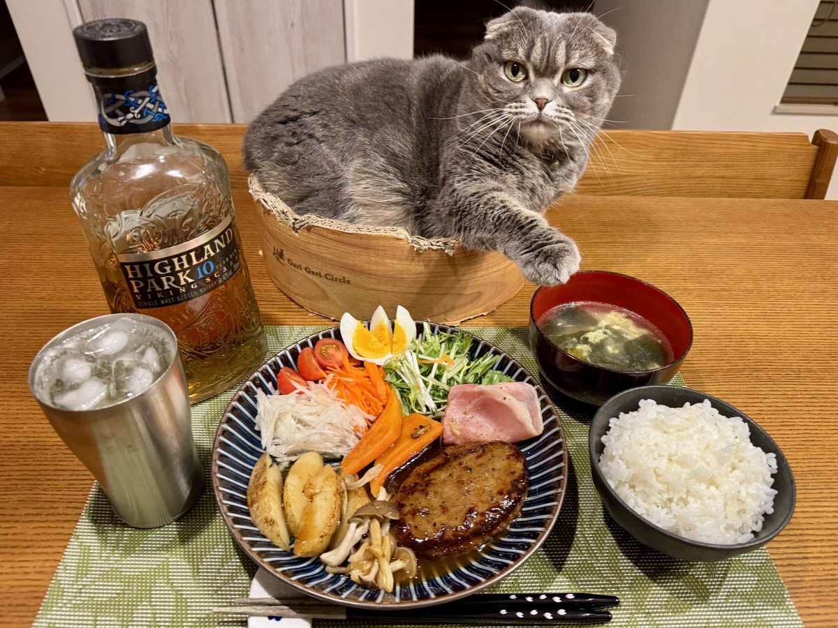 宮崎牛ハンバーグと猫達 Miyazaki Beef Hamburger Steak & Cats #猫 #スコティッシュフォールド #宮崎牛ハンバーグ #ふるさと納税 #ハイランドパーク #ハイボール #cat #scottishfold #miyazakibeefhamburgersteak #highlandpark #highball pic.x.com/kHMsws59Xj