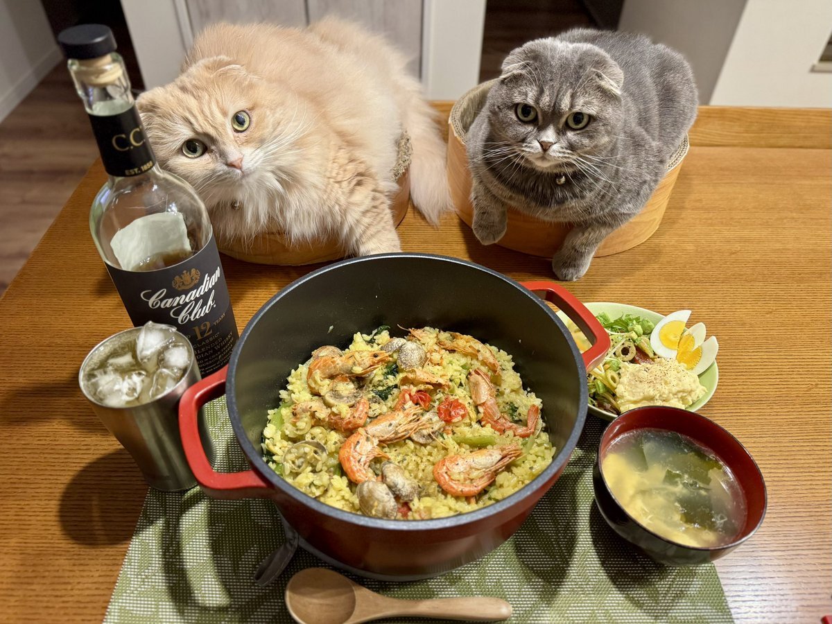 パエリアと猫達 Paella & Cats #猫 #スコティッシュフォールド #パエリア #カナディアンクラブ #ハイボール #cat #scottishfold #paella #canadianclub #highball pic.x.com/xn1oU0ovsB