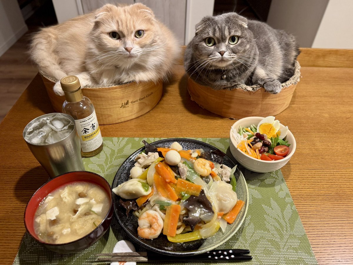 あんかけ焼きそばと猫達 Stir-Fried Noodles with Thick Sauce & Cats #猫 #スコティッシュフォールド #あんかけ焼きそば #余市ウッディアンドバニラ #ハイボール #cat #scottishfold #stirfriednoodleswiththicksauce #yoichiwoodyandvanillic #highball pic.x.com/ZCy0SeQbjd