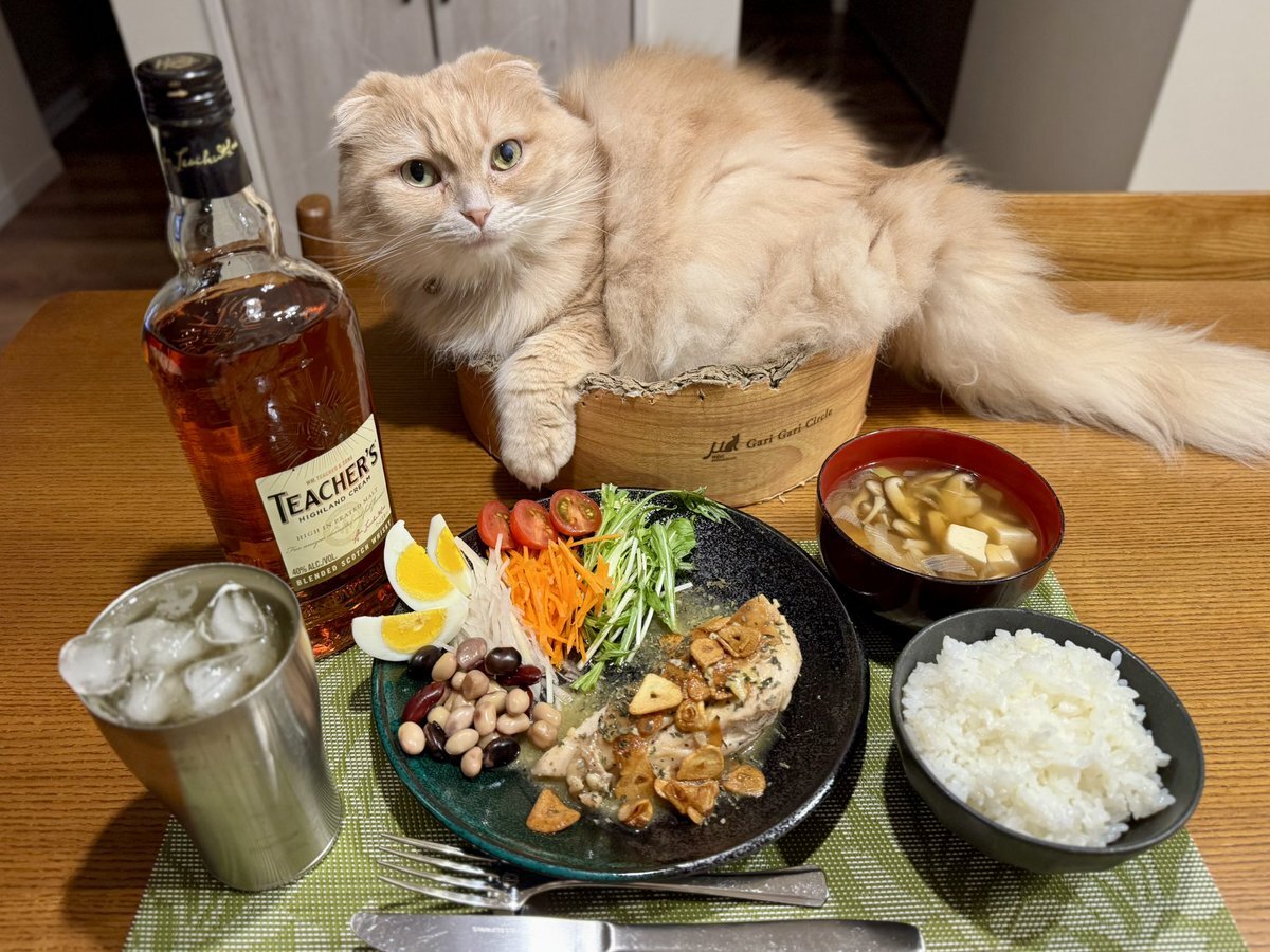鶏胸肉のステーキと猫達 Chicken Breast Steak & Cats #猫 #スコティッシュフォールド #鶏胸肉のステーキ #ティーチャーズ #ハイボール #cat #scottishfold #chickenbreaststeak #teachers #highball pic.x.com/pJbjR51iyg