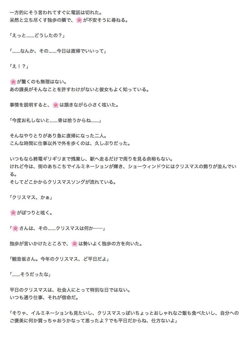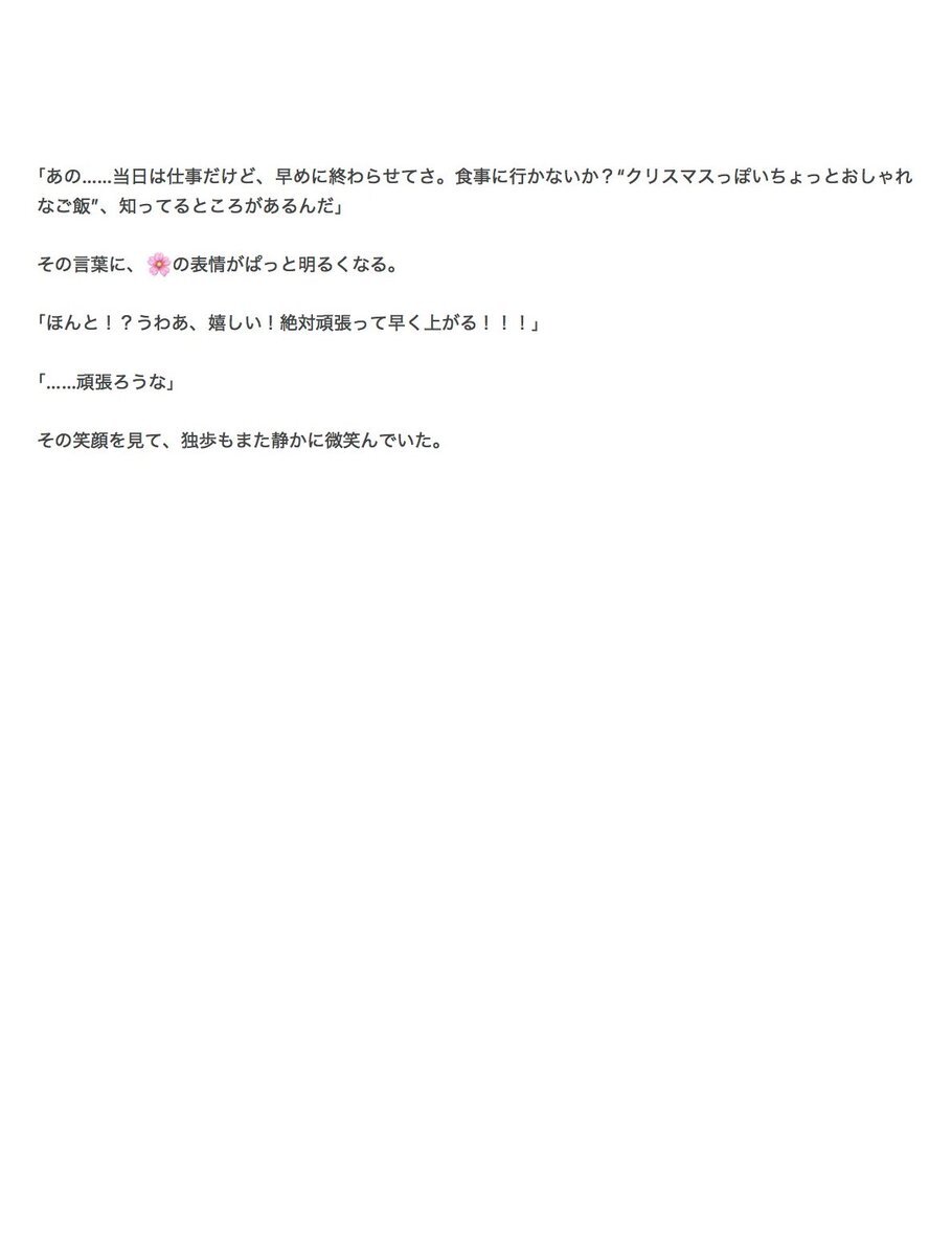 The Eve of Love, The Eve of Christmas (2/2) ・夢主(🌸)と👔は仲のいい同僚 ・友達以上恋人未満 👔 #hpmiプラス #hpmi夢 pic.x.com/jrcCujoNWh