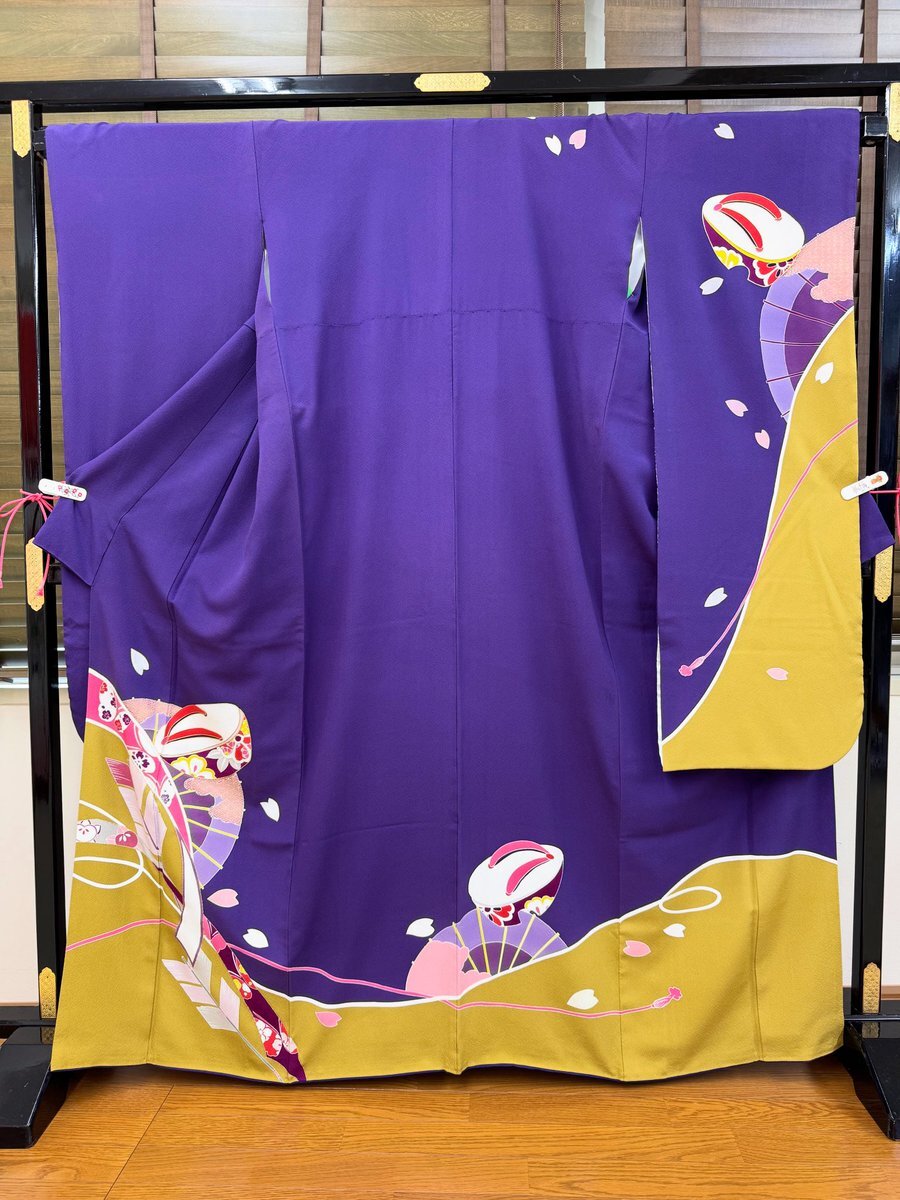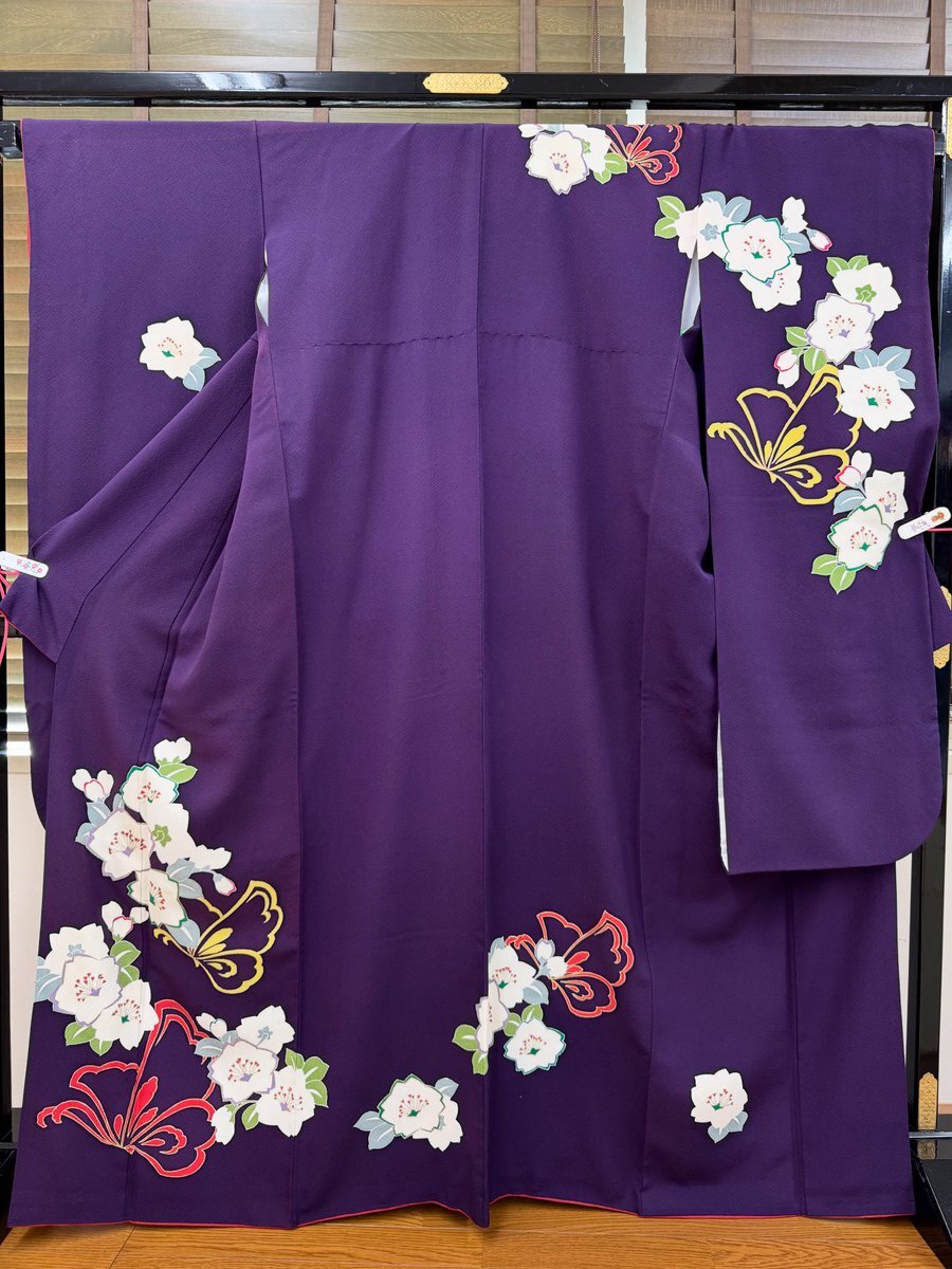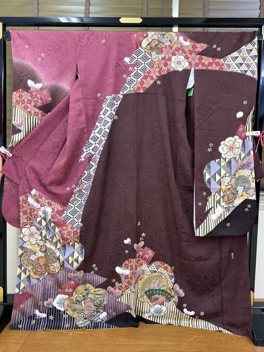 振袖のご紹介、既存の振袖です。身丈164裄67袖109前24後30正絹、濃い紫色で、かっこいいです。よろしくお願いします。 #振袖 #usedkimono #kimonoshop #hurisode #ueno #akihabara #suehirocho pic.x.com/iFppLgDr6T