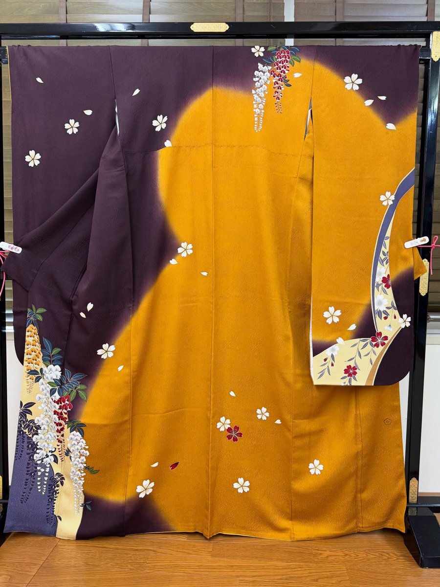 振袖のご紹介、既存の振袖です。身丈164裄66袖108前24後29正絹、珍しい桜と藤の組み合わせです。よろしくお願いします。 #振袖 #usedkimono #kimonoshop #hurisode #ueno #akihabara #suehirocho pic.x.com/oYCNAYXffW