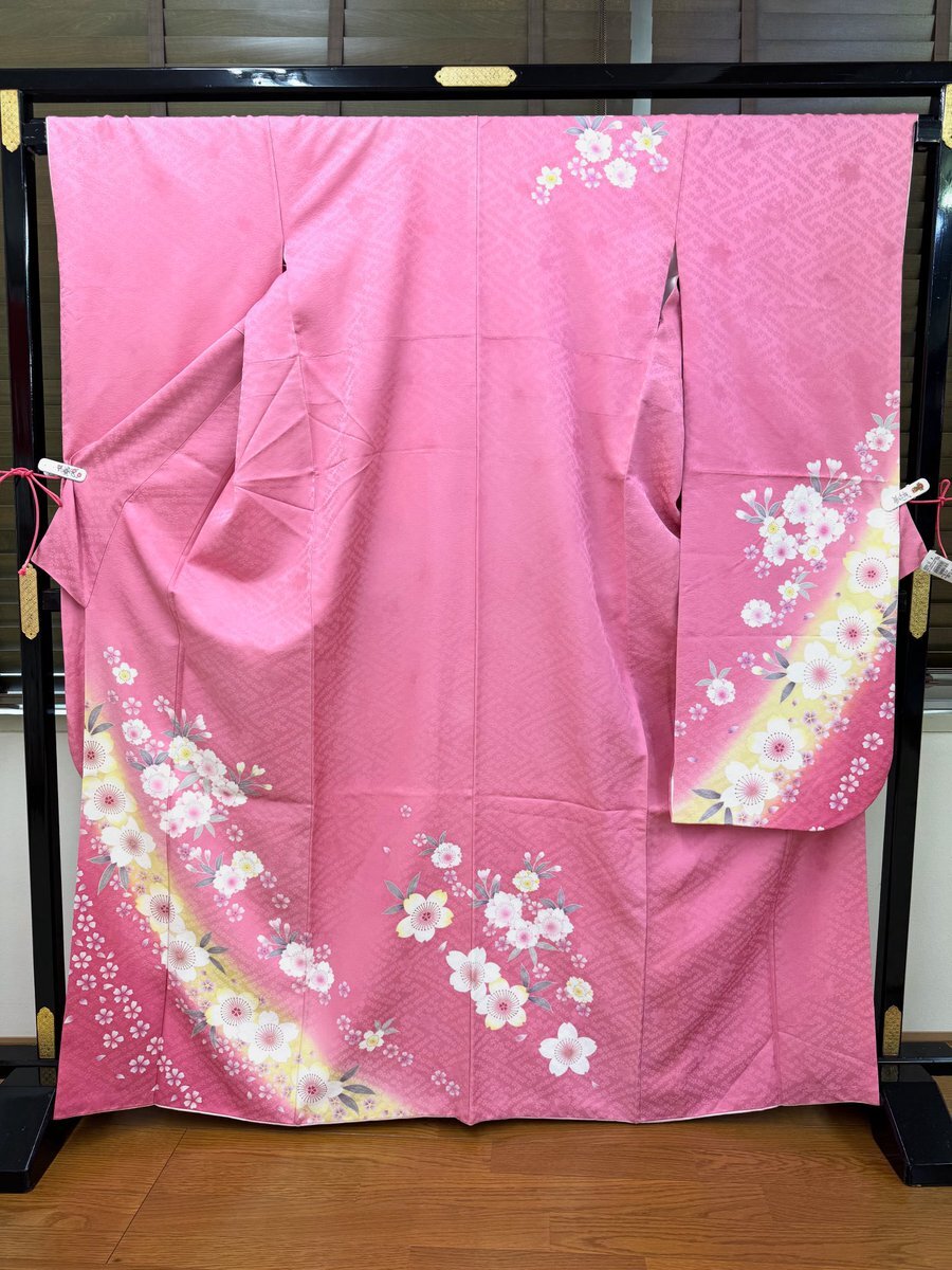 振袖のご紹介、既存の振袖です。身丈168裄67袖109前24後30正絹、ピンクの地にいろんな季節のお花が散りばめています。よろしくお願いします。 #振袖 #usedkimono #kimonoshop #hurisode #ueno #akihabara #suehirocho pic.x.com/eQqmPCuZLU