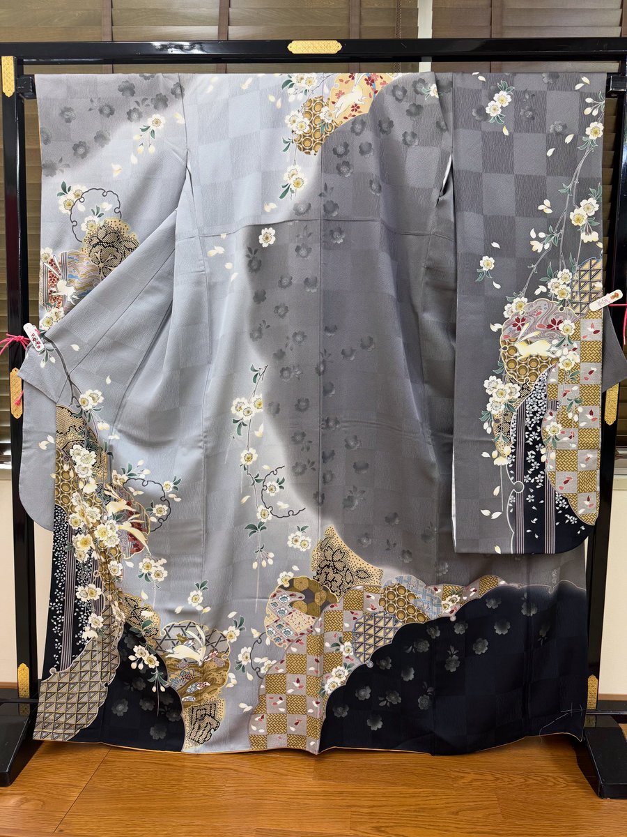 振袖のご紹介、既存の振袖です。身丈166裄67袖109前24後30正絹、珍しいうさぎでグレーです。デザインは寛斎でかっこいいです。よろしくお願いします。 #振袖 #usedkimono #kimonoshop #hurisode #ueno #akihabara #suehirocho pic.x.com/PIMSop2pOy