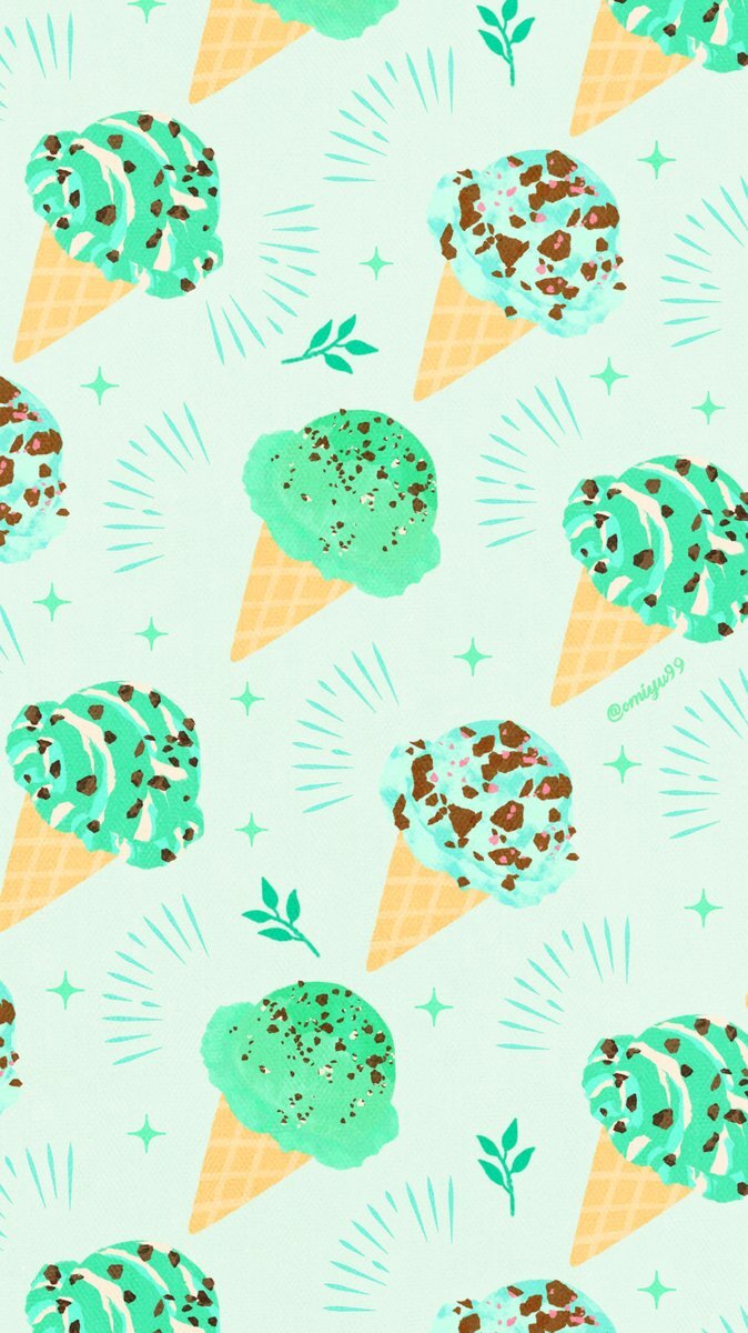 チョコミントアイスな壁紙🌿🍦#illust #壁紙 #イラスト #iPhone壁紙 #アイス #Icecream #mint #chocolate #食べ物 リクエストありがとうございます! 今日も暑い〜!🥵 pic.x.com/p7fSeovoiR