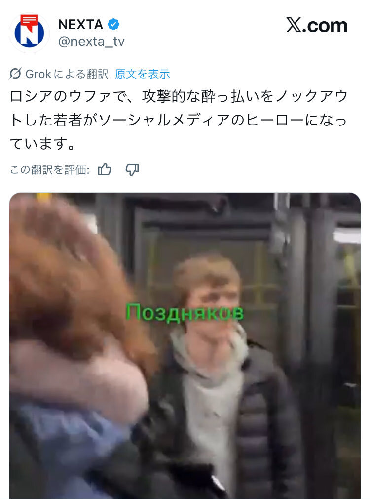 In Ufa, Russia, a young man who knocked out an aggressive drunk has become a social media hero.