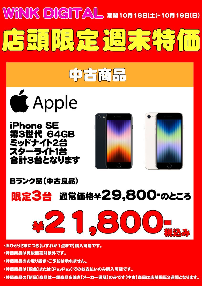 本日も驚愕買取実施中! AppleのiPhoneSE3 256GBを驚愕価格の¥34,000でお買取! どこよりも高く頑張ってお買取! スマホショッキングでは新品・中古も驚愕買取! スマホの驚愕買取なら! スマホショッキング! smaho-shocking.com #スマホ #スマートフォン #iphone #apple #iphoneSE pic.x.com/pQjNvD85Vj