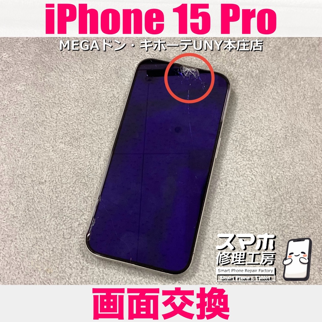 【予約なしでも即日対応から👍】 iPhone15Proの上の方のガラスが割れて画面が映らなくなっちゃった😭 アイフォンの画面交換ならスマホ修理工房MEGAドン・キホーテUNY本庄店にお任せください💪 iPhoneは13・14・15シリーズや #iPhoneSE 各世代の修理対応、そして #iPhone16 シリーズも修理対応OK! pic.x.com/XFtH73ytst