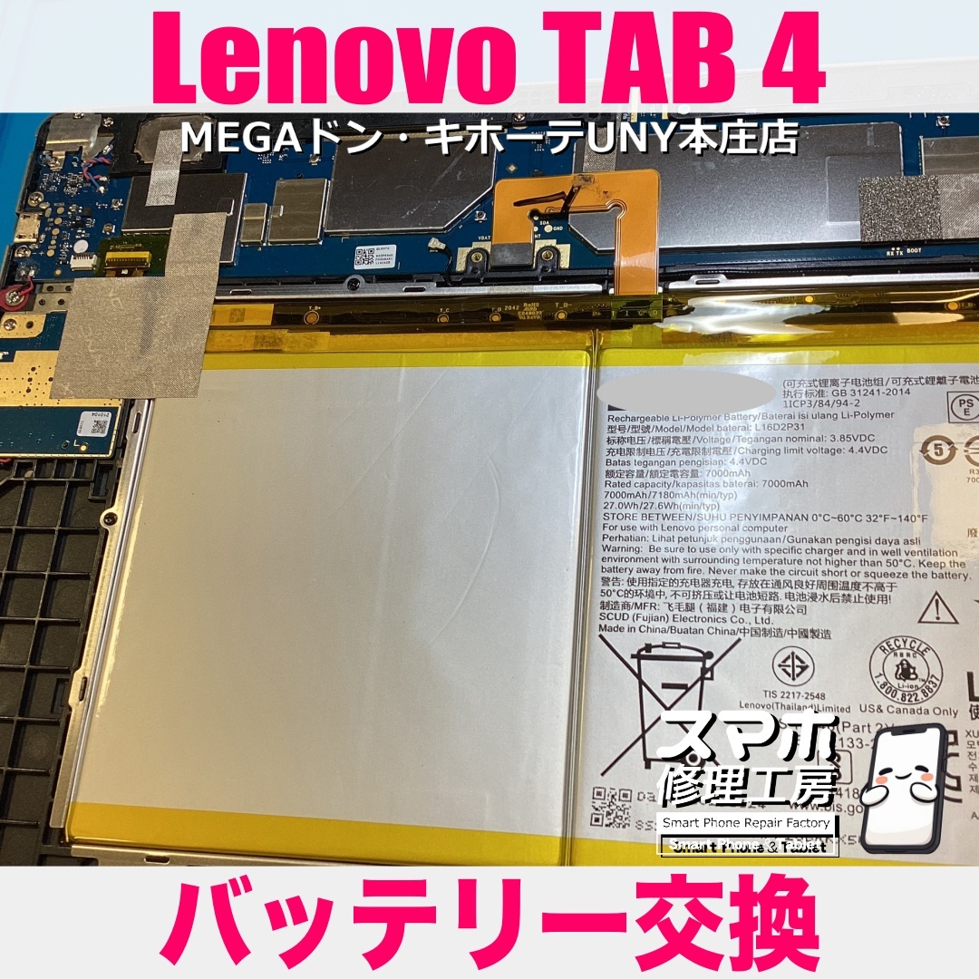 【予約なしでも即日対応から👍】 LenovoTAB4(801lv)の電池持ちをなんとかよくしたい❗️ レノボのバッテリー交換はスマホ修理工房MEGAドン・キホーテUNY本庄店にご相談ください👍 iPhoneは13・14・15シリーズや #iPhoneSE 各世代の修理対応、そして #iPhone16 シリーズも修理対応OK! pic.x.com/heEDZXUaQU